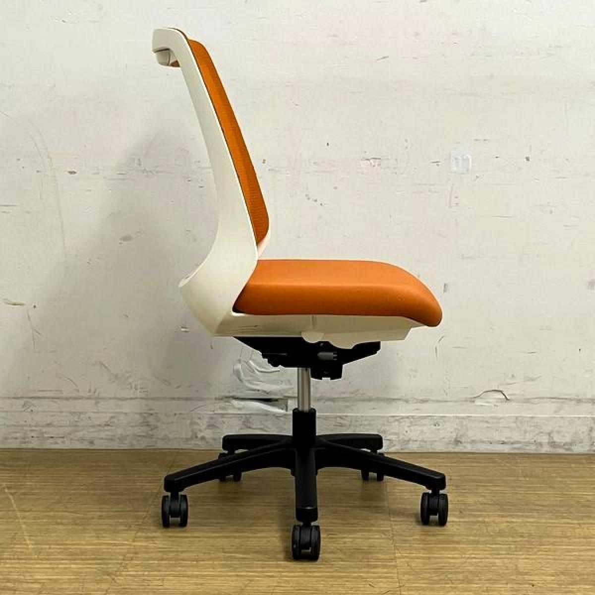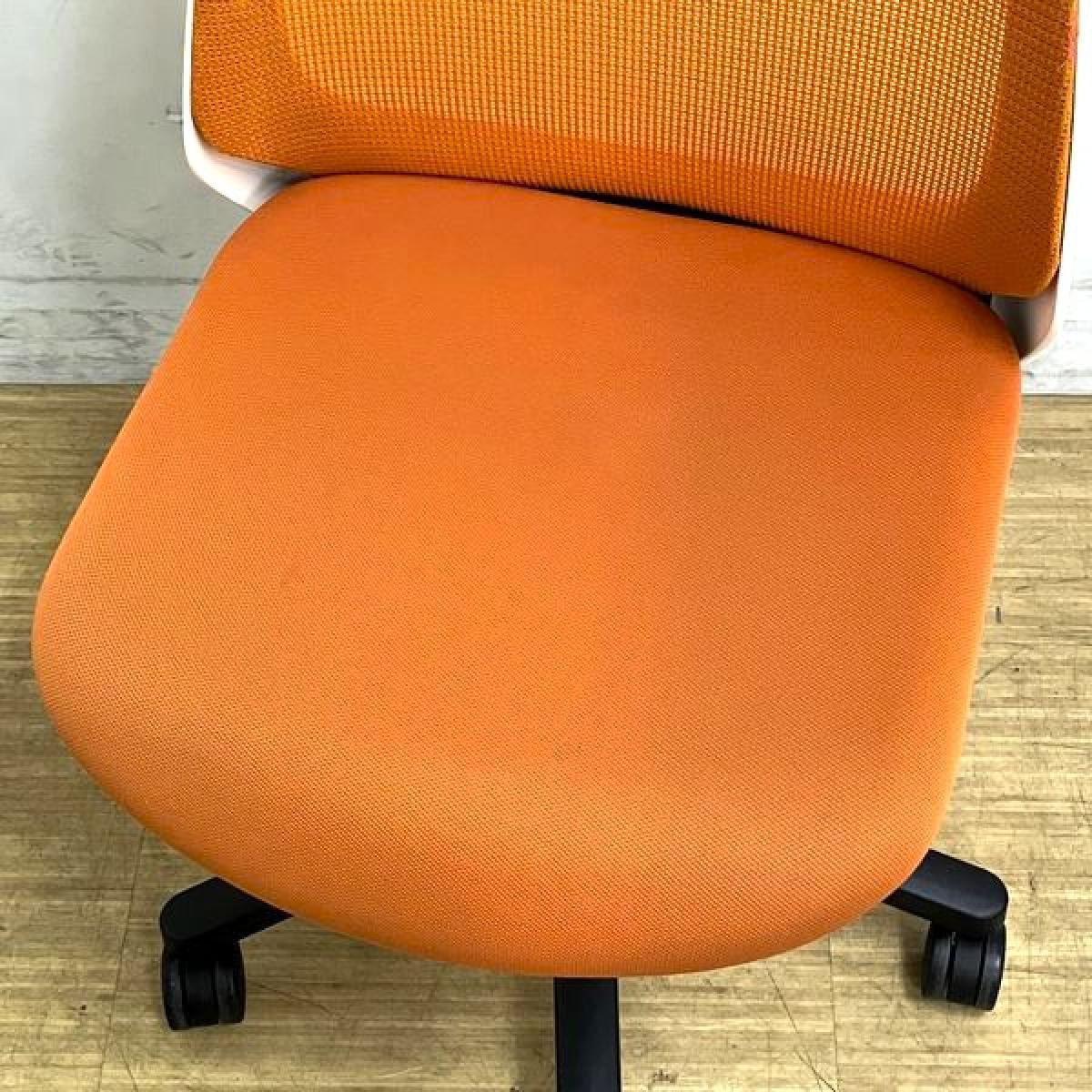 イトーキ ノナ プレーンメッシュ 肘無しチェア オレンジ×ホワイトフレーム コンパクトなサイズ感で女性におすすめ- 名古屋千種店