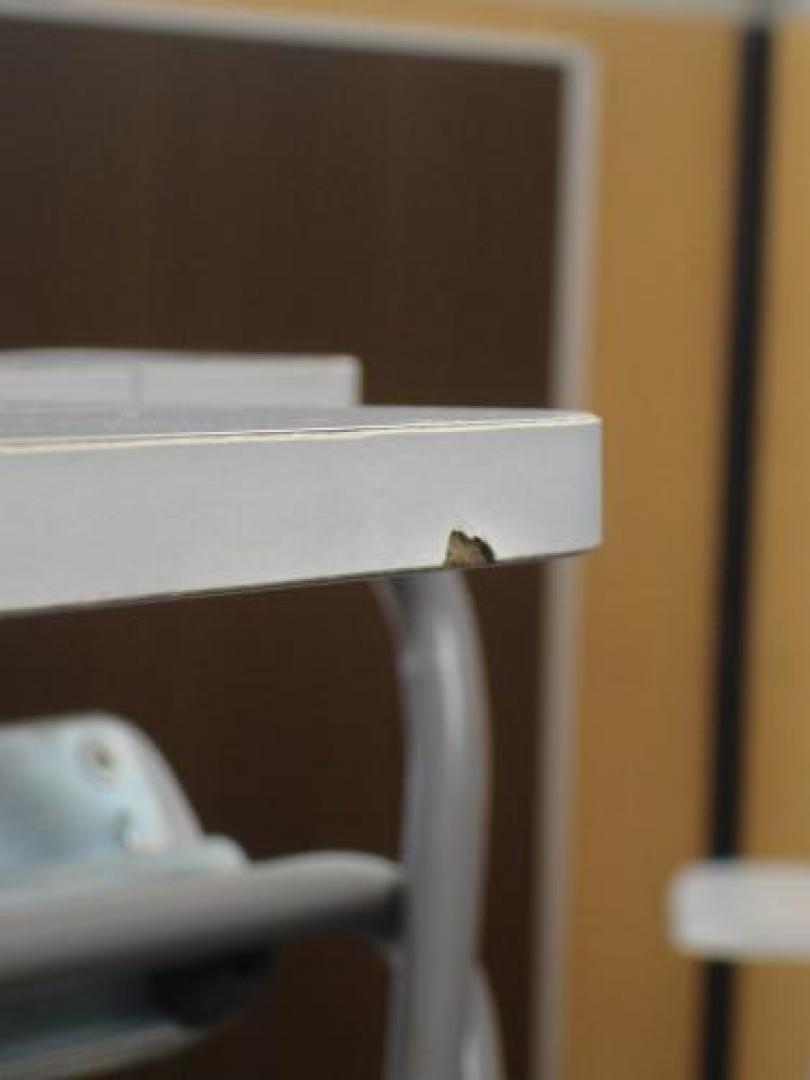 - 目立つ箇所あり傷・破れ・ほつれ・へたり・しわが多数または深い傷・破れ・ほつれ・へたり・しわが一部ある。※座面・背もたれ、シェル、脚部等にある。