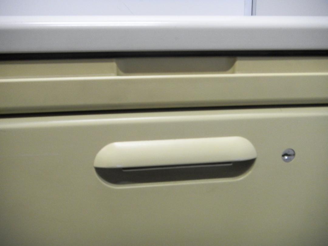 - 一部不具合ありその脇机・ワゴンの本来の効用を果たすための機能以外の一部が使用不可な状態。(例、引出が開閉しづらい、 キャスターロック機能使用不可、ラッチ不良 等がある。)