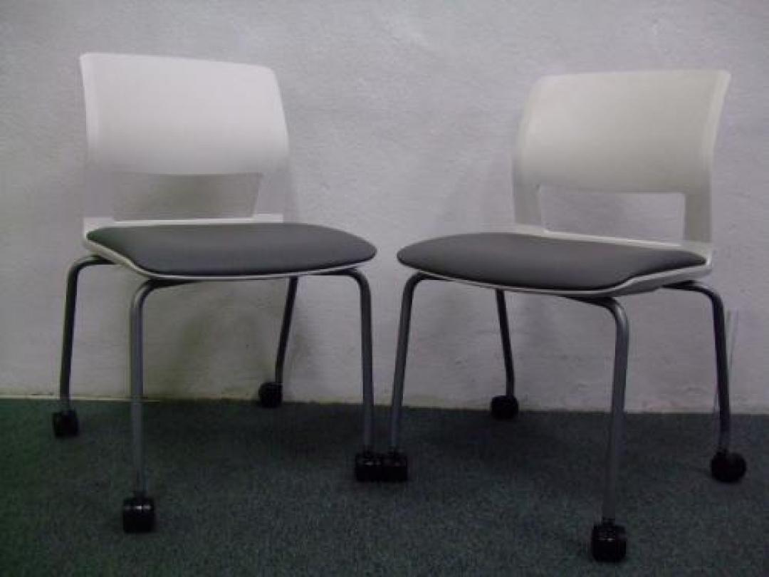 ホワイトカラーのミーティングチェア+サイドスタックテーブルのセット!!【会議チェア】- 在庫数