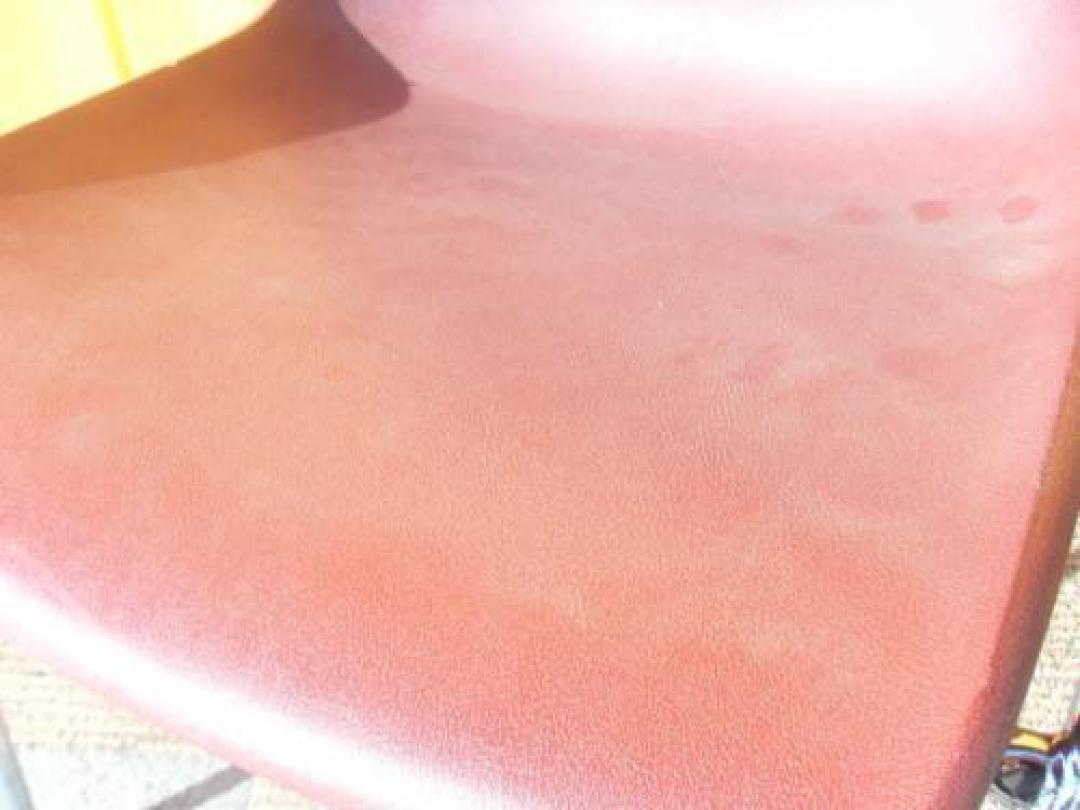 - かなり強い濃い黄ばみ・変色が商品全体にある。(例、座面・背もたれ、脚部等にある。)