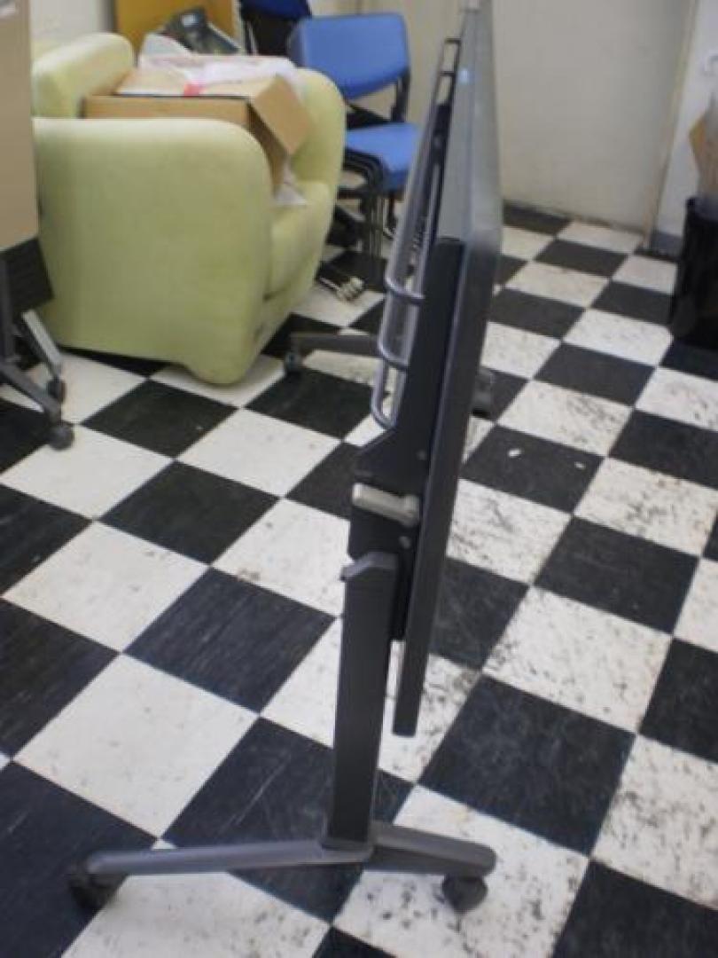 - 一部不具合あり天板歪み、アジャスター無し、キャスター使用不可ようなそのテーブルの本来の効用を果たすための機能以外の一部が使用不可な状態。(例、キャスターロッ ク機能使用不可、棚板無し等がある。)