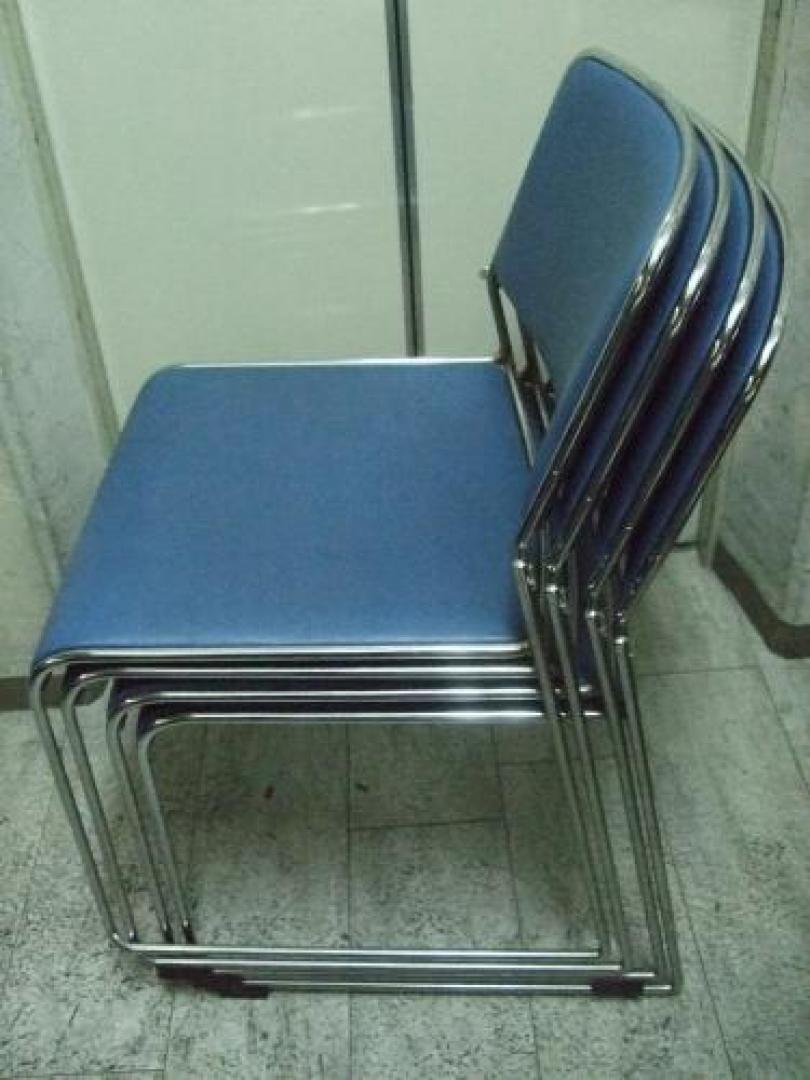 ☆★ イトーキ スタッキングチェア 4脚セット ビニール ブルー 【セット商品】 ☆★【会議チェア】- 名古屋本店