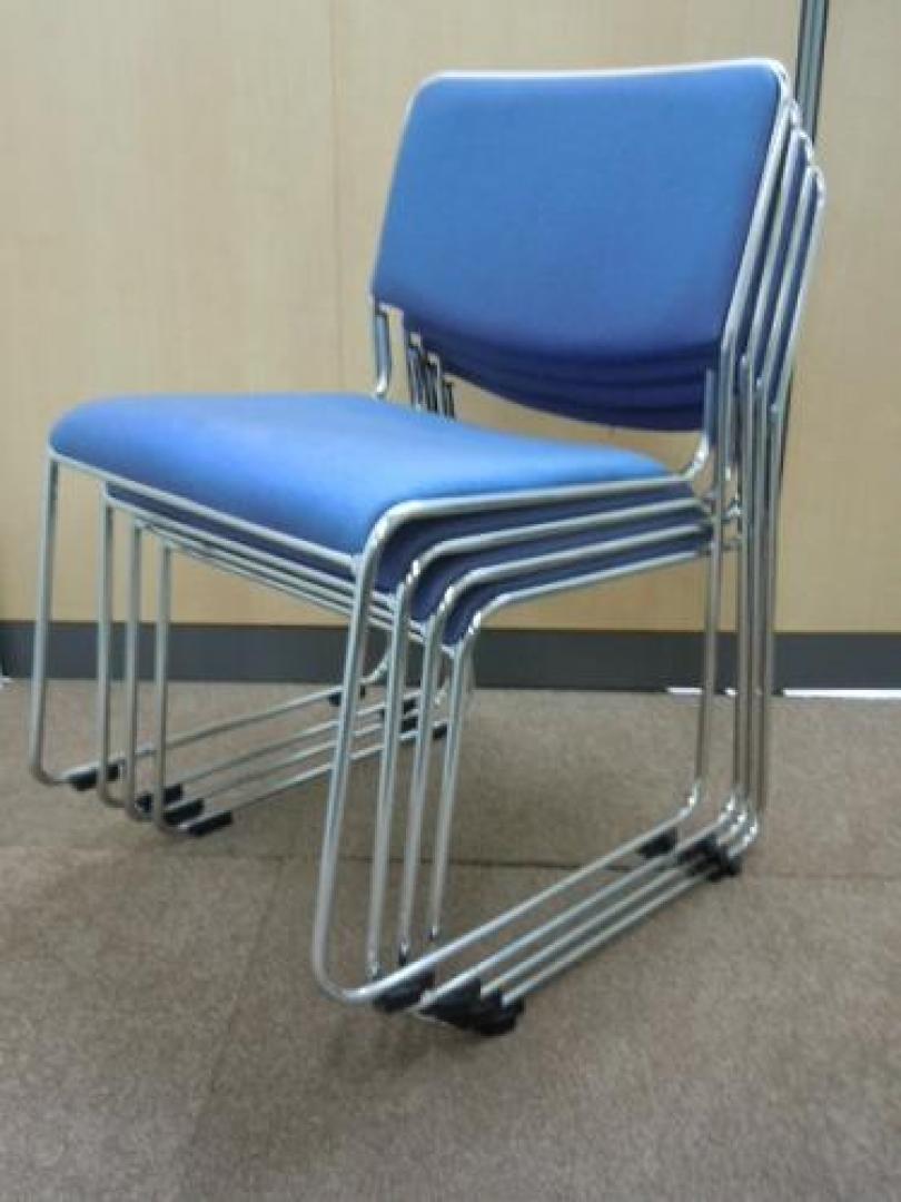 【状態良好】映えるナイスブルー薄い座面 スタッキングチェア ノーブランド品【会議チェア】- 在庫数