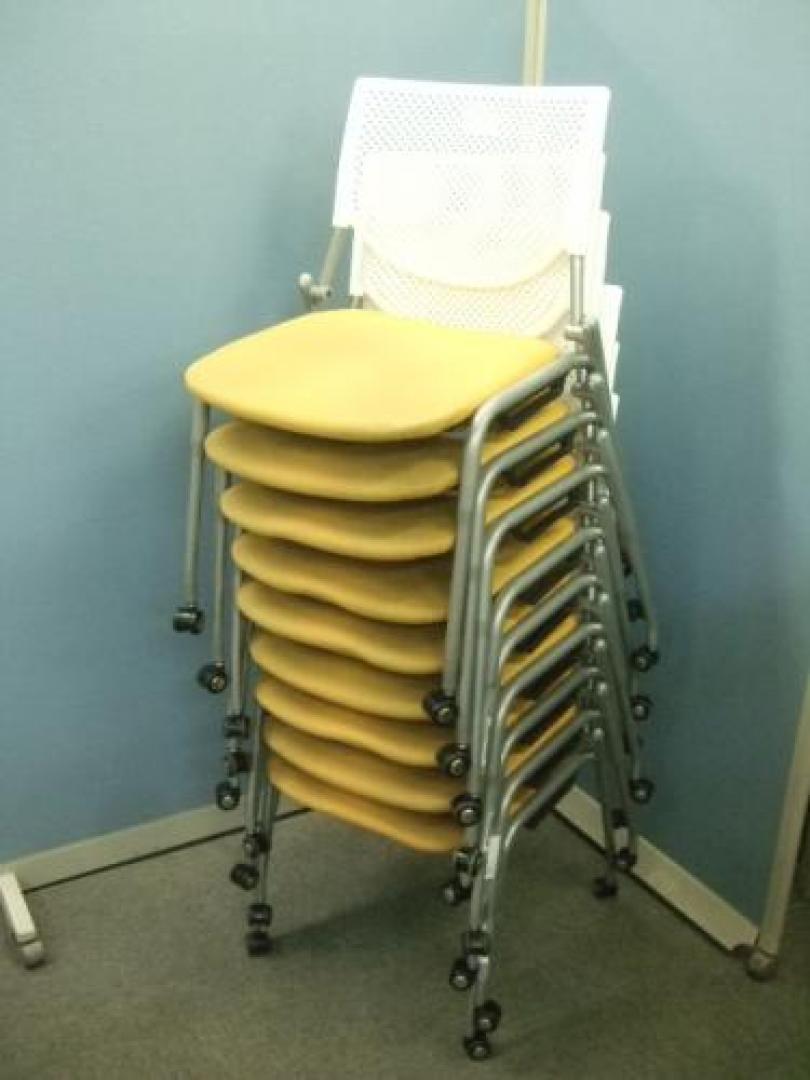 オカムラ製■プロスタック■座面オレンジ・背もたれホワイト■2脚づつでお安くご提供【セット商品】【会議チェア】- 横浜本店