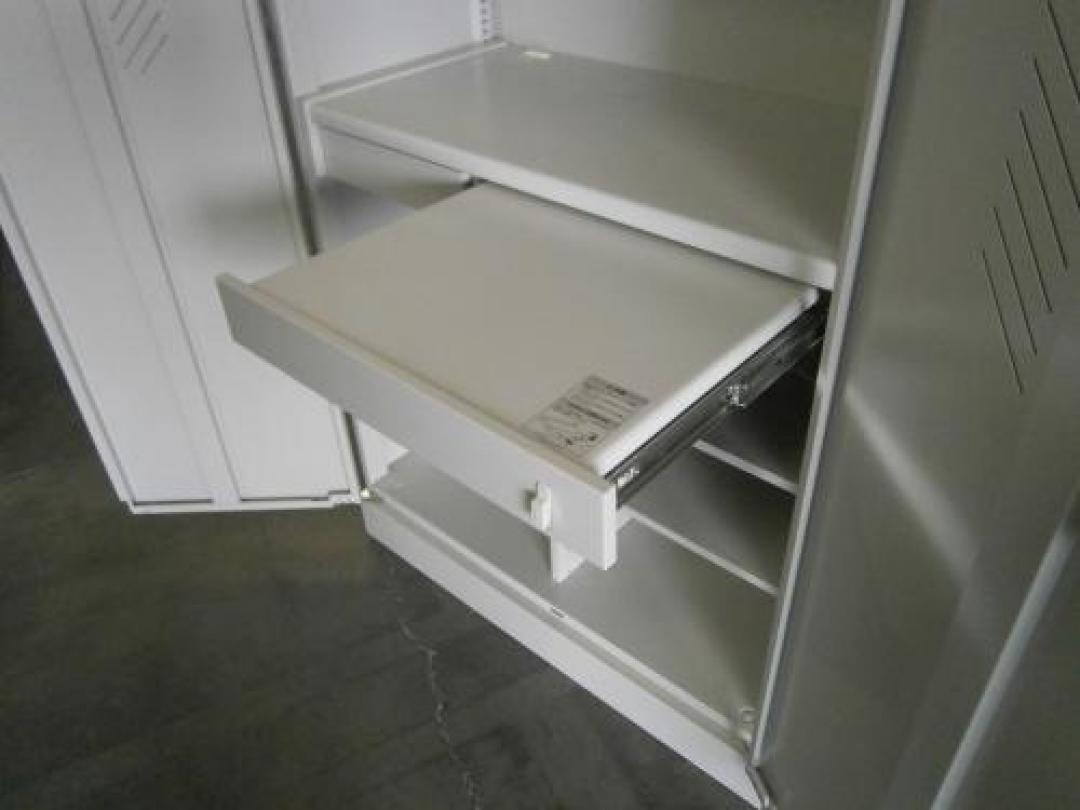 - 一部不具合ありそ引出の開閉不可、施錠不可、棚板無しといったの書庫の本来の効用を果たすための機能以外の一部が使用不可(例、扉、引出の開閉がしづらいなどがある。 )