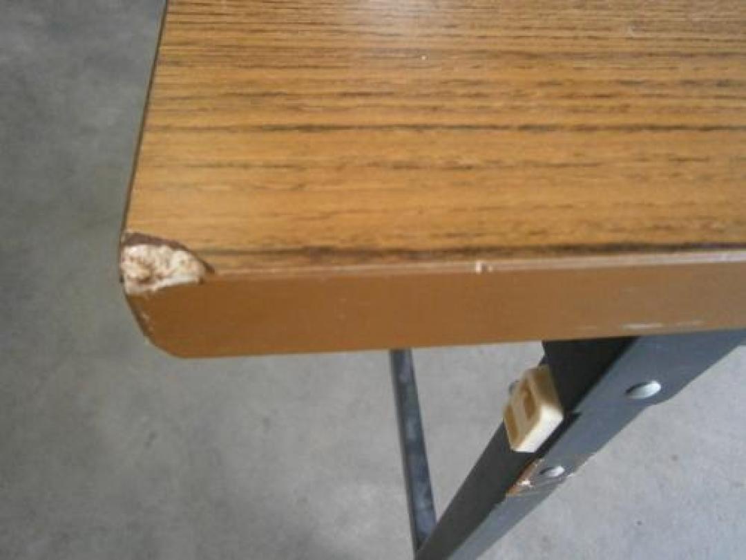 - 壊れている天板歪み、アジャスター無し、キャスター使用不可のようにそのテーブルの本来の効用を果たすための機能に不具合がある。