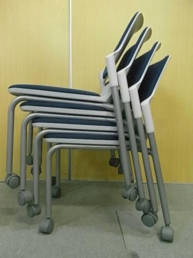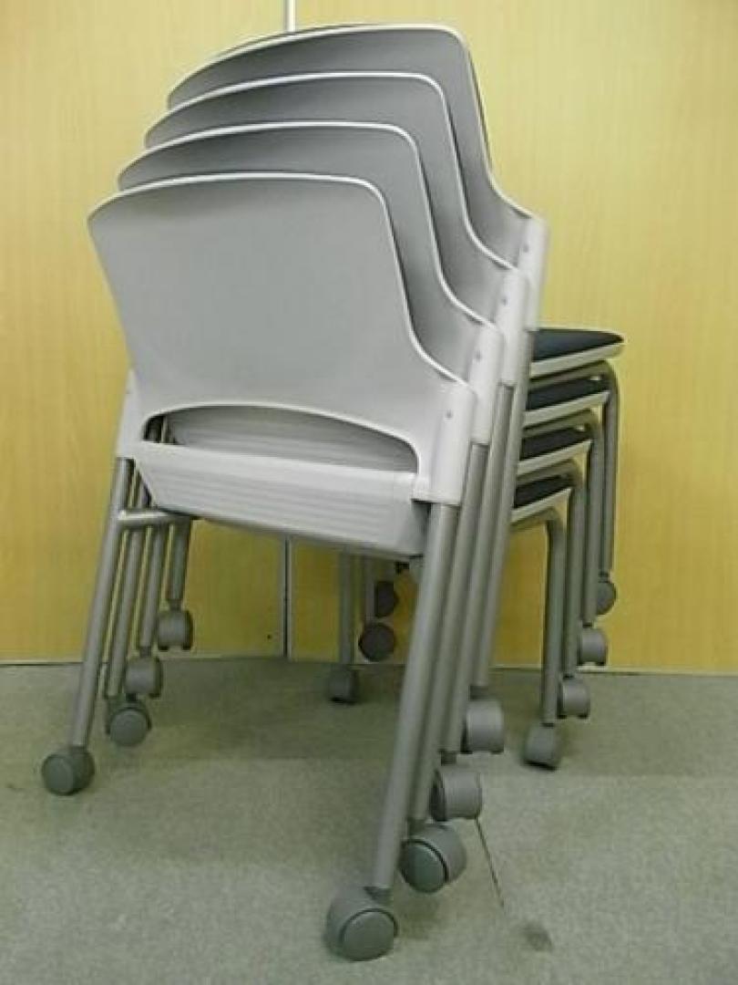 【4脚セット】■内田洋行 キャスター付き ミーティング用スタッキングチェア【セット商品】【会議チェア】- 在庫数