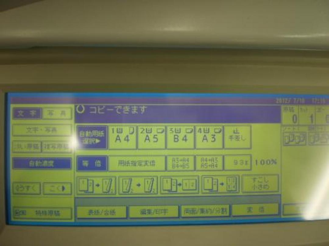 | 連続複写速度[A4(A3)] | A3:19枚 B4:22枚 A4(ヨコ):35枚 |