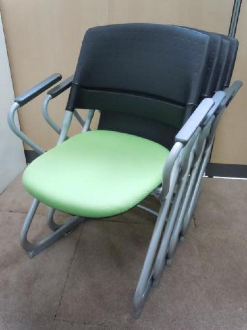 【4脚揃います】 ■ オカムラ okamura ■ リータミーティングチェア LITA ■ 背カバーなしライトグリーン ■型番:H167BZ-FX28【会議チェア】- 在庫数