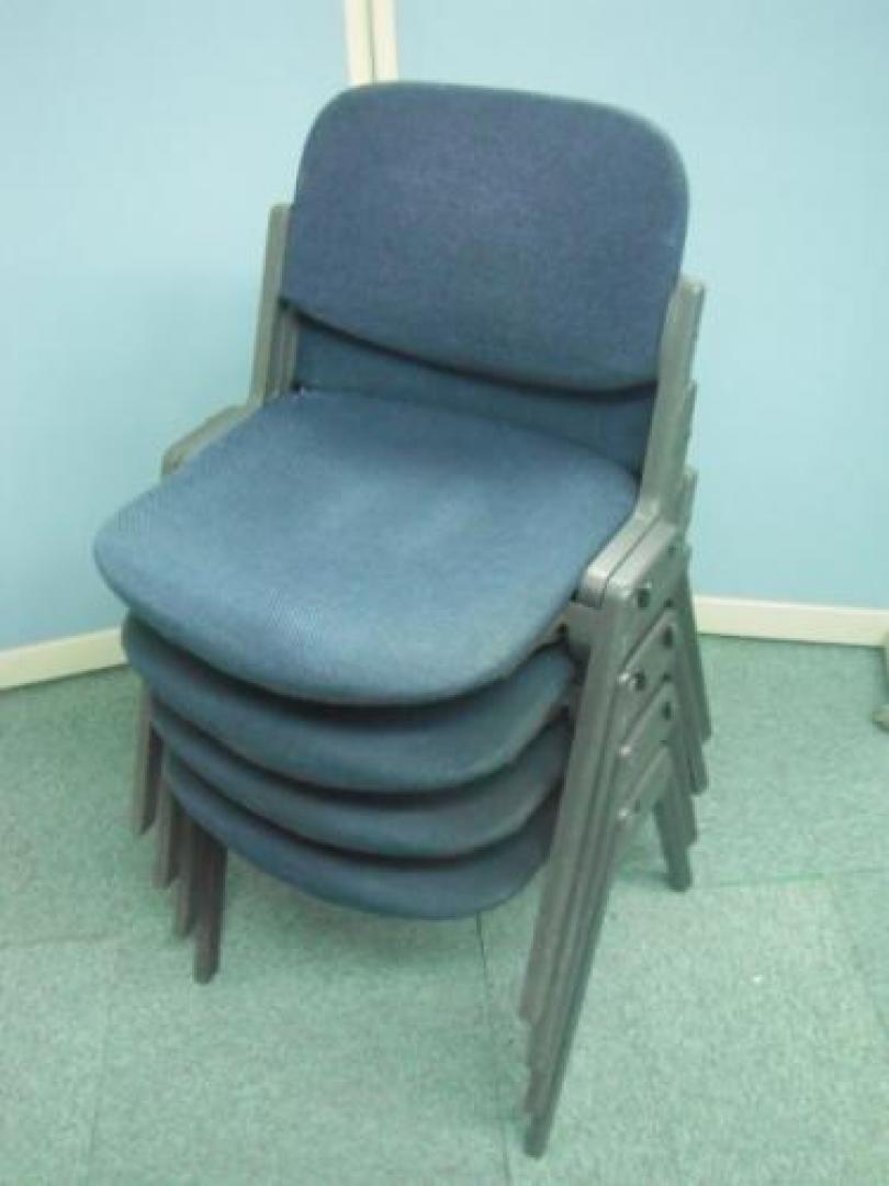 大量30脚入荷!オカムラ製のスタッキングチェアです!布地の渋いブルー【会議チェア】- 品川・三田店