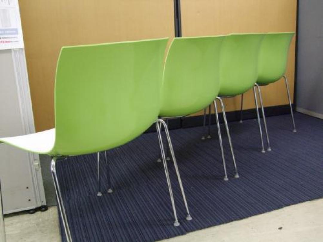 【おつとめ品】【オカムラ製【超お洒落!】【11脚揃います】<br>Catifaチェア・コンビシェル ライトグリーン+ホワイト L491FB G915【会議チェア】- 日本橋店