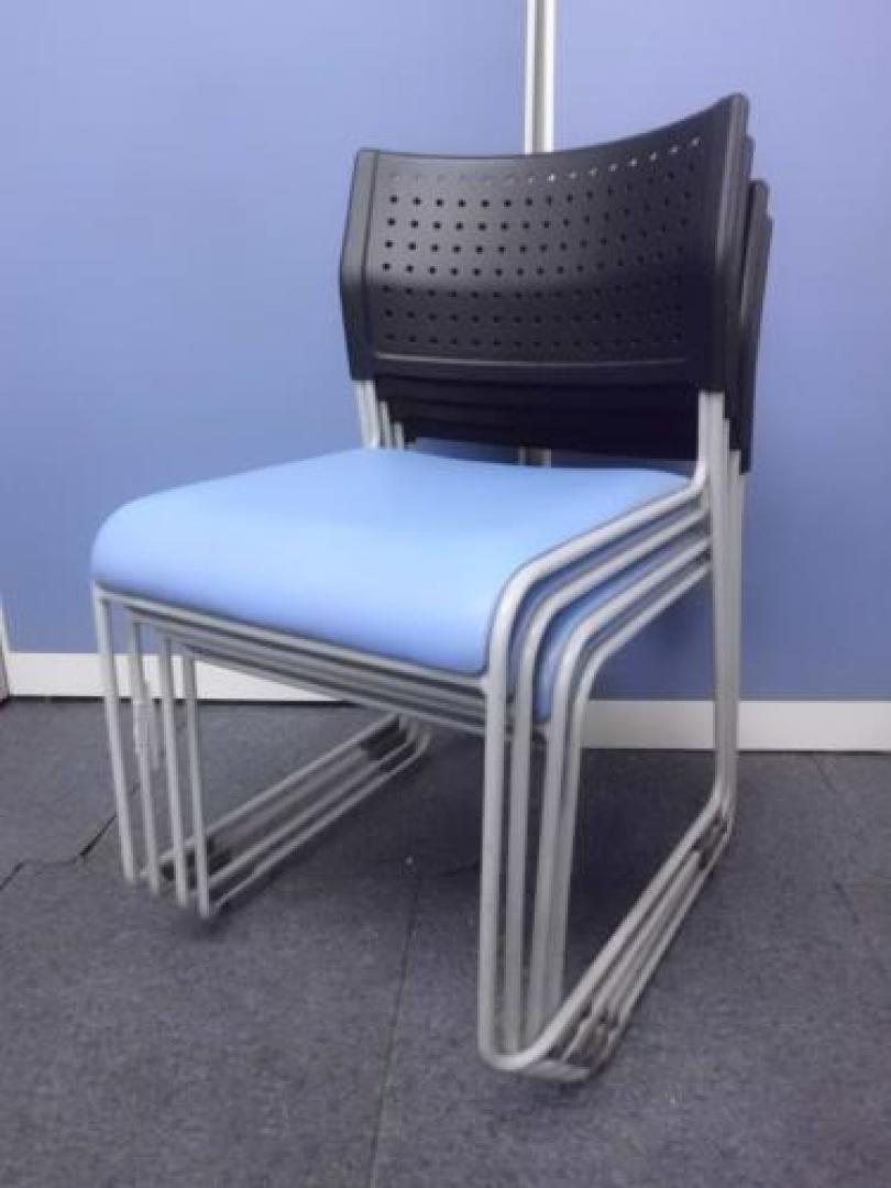 【汚れても拭けます!】 スタッキングチェア ブラック/ブルーの2トーン【会議チェア】- 川崎店