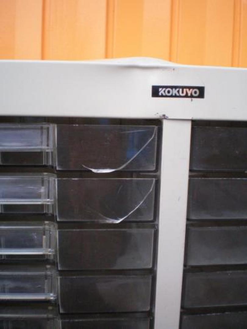 - 多数不具合あり引出の開閉不可、施錠不可、棚板無しといったその書庫の本来の効用を果たすための機能以外の多数が使用不可(例、扉、引出の開閉がしづらいなどがある。 )