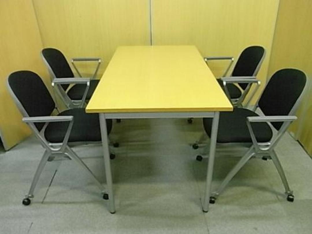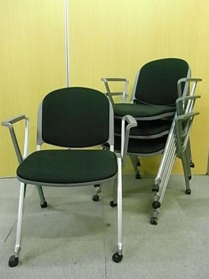 ■内田洋行 ■スタッキングチェア(キャスター付き)4脚セット〜上に重ねられます!〜【会議チェア】- 在庫数