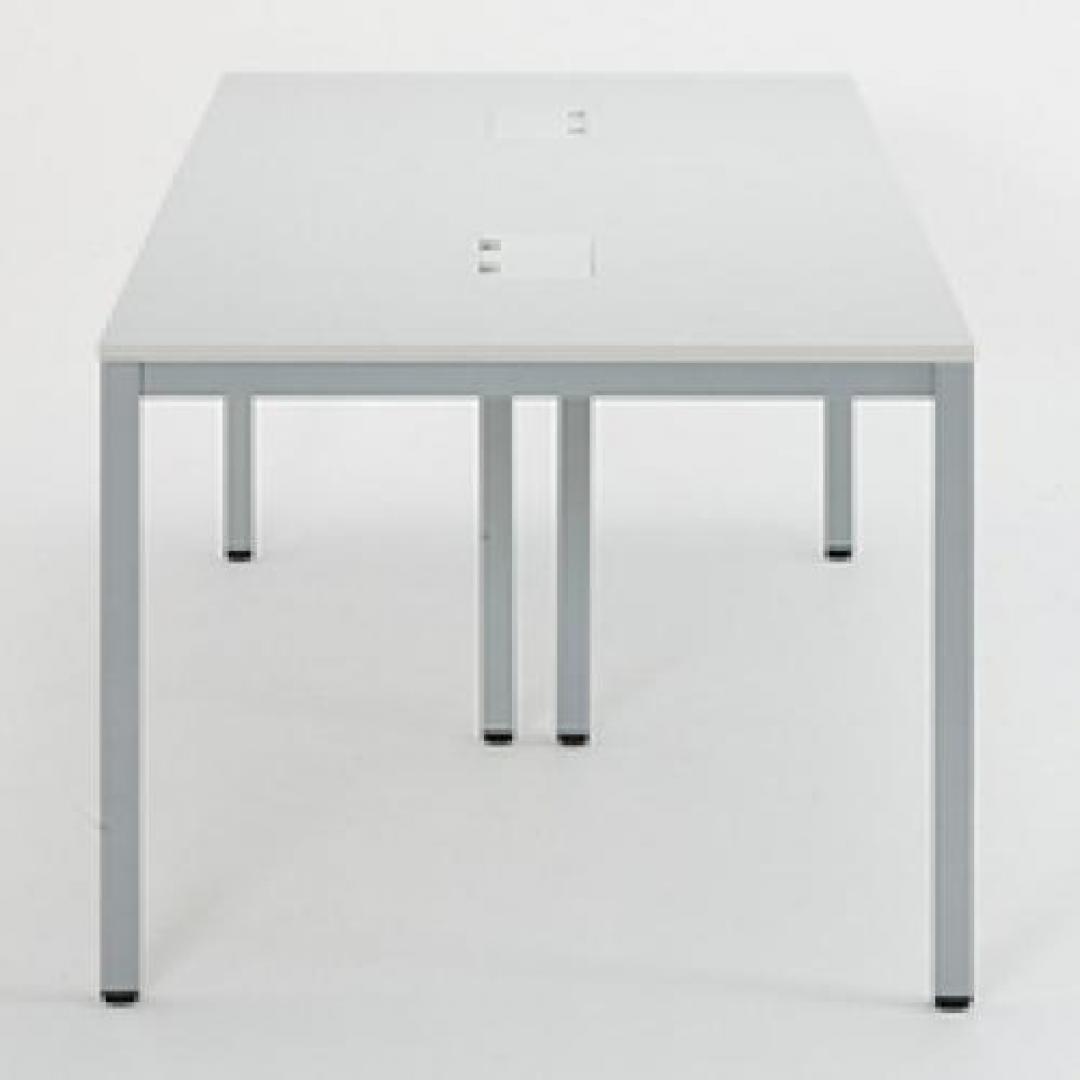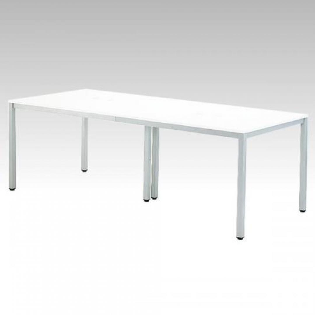 【★人気商品★】OAミーティングテーブル ■W2100タイプ ■ホワイト ■配線を通せるコンセントケース付!新品