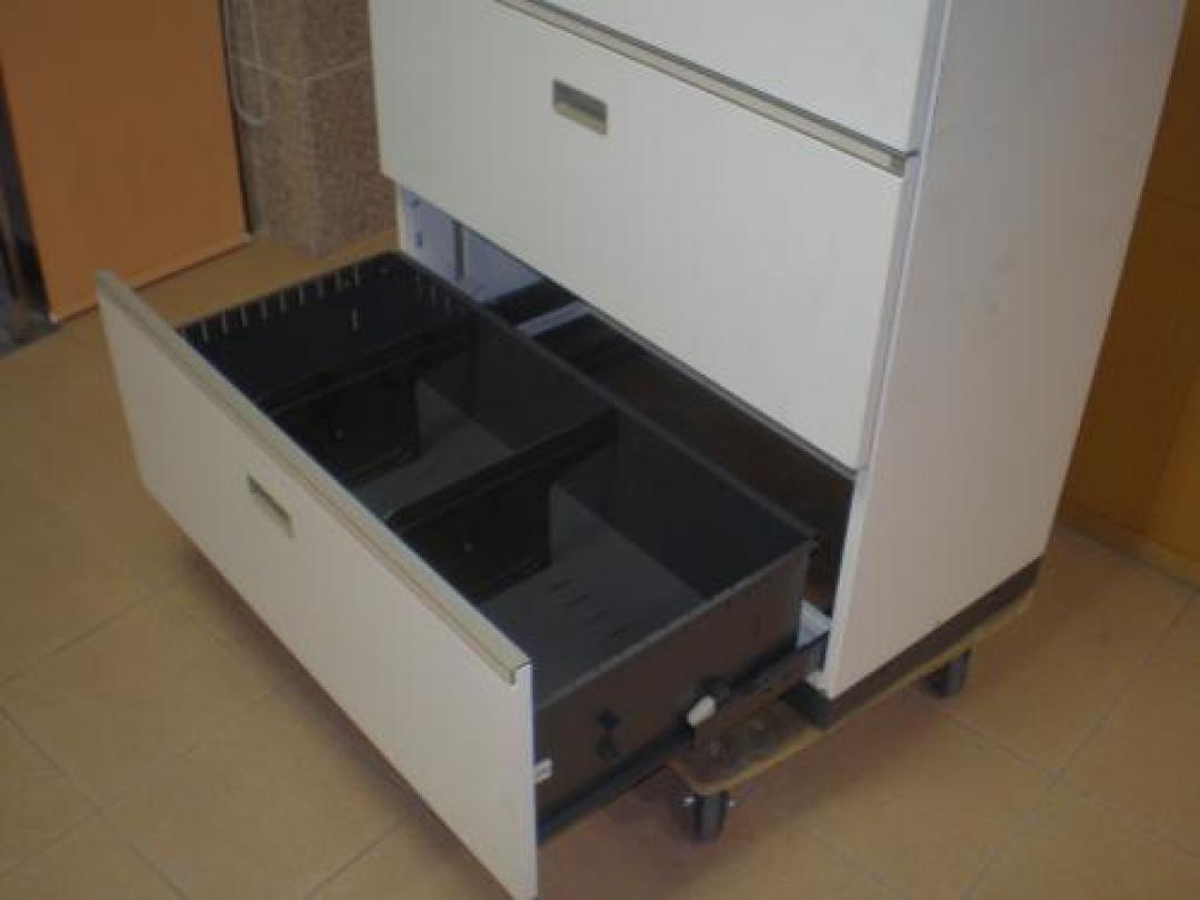 - 多数不具合あり引出の開閉不可、施錠不可、棚板無しといったその書庫の本来の効用を果たすための機能以外の多数が使用不可(例、扉、引出の開閉がしづらいなどがある。 )