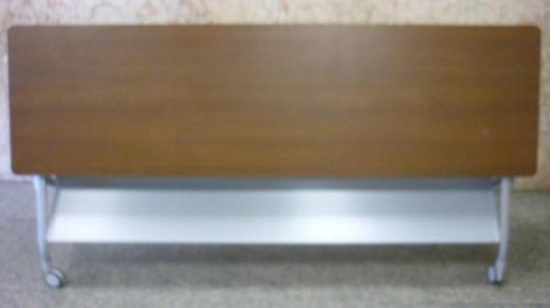 - 一部不具合あり天板歪み、アジャスター無し、キャスター使用不可ようなそのテーブルの本来の効用を果たすための機能以外の一部が使用不可な状態。(例、キャスターロッ ク機能使用不可、棚板無し等がある。)