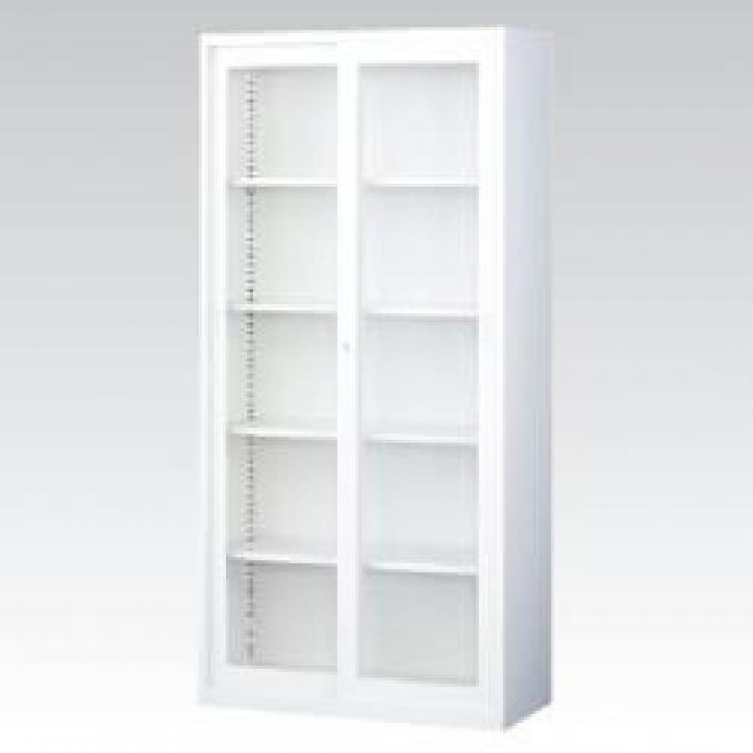 【収納家具】ガラス引き違い A4×5段対応 ホワイト【事務用品】- 全店共通商品