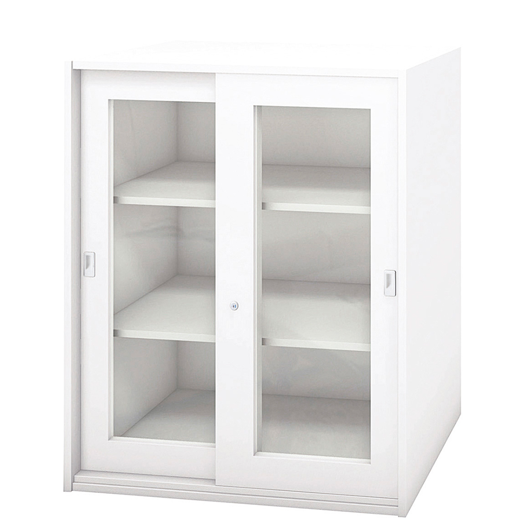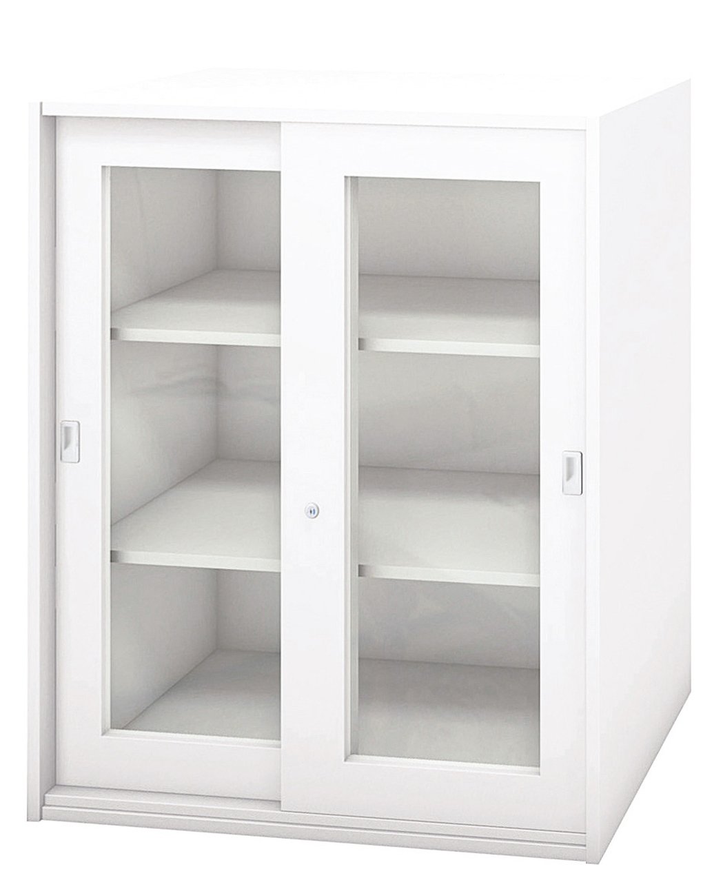 【システム収納】スチール製 ガラス扉 引き違い書庫 (ベース別途)【事務用品】- 全店共通商品