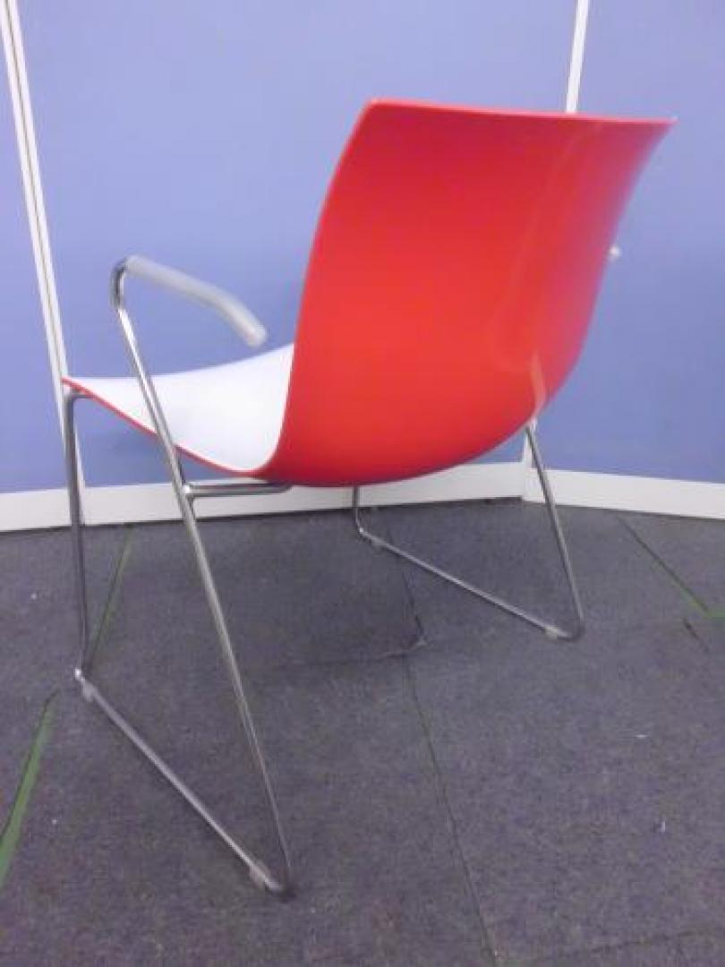 【¥6.300高級チェアシリーズ】オカムラ製 ミーティングチェア【カティファ】 ■ ホワイト/レッドカラー【会議チェア】- 川崎店