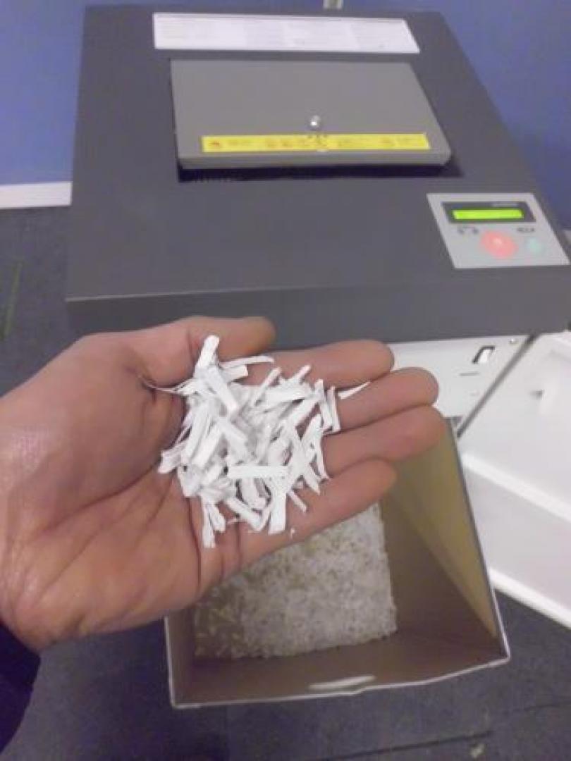 紙を圧縮してミリ単位でチップ状に切り刻むワンカットクロスタイプ シュレッダーです。