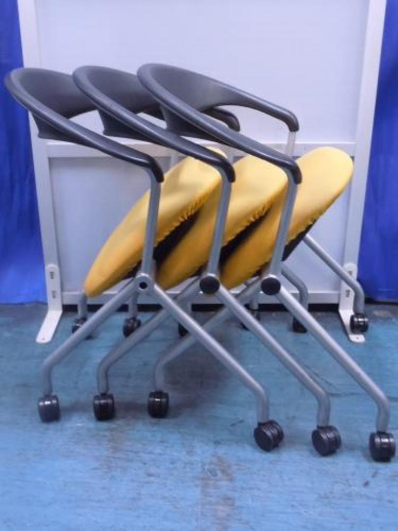 【4脚入荷!】UCHIDA 内田洋行製 ■FM290 ■ミーティングチェア ネスティングチェア ■イエロー【会議チェア】- 在庫数