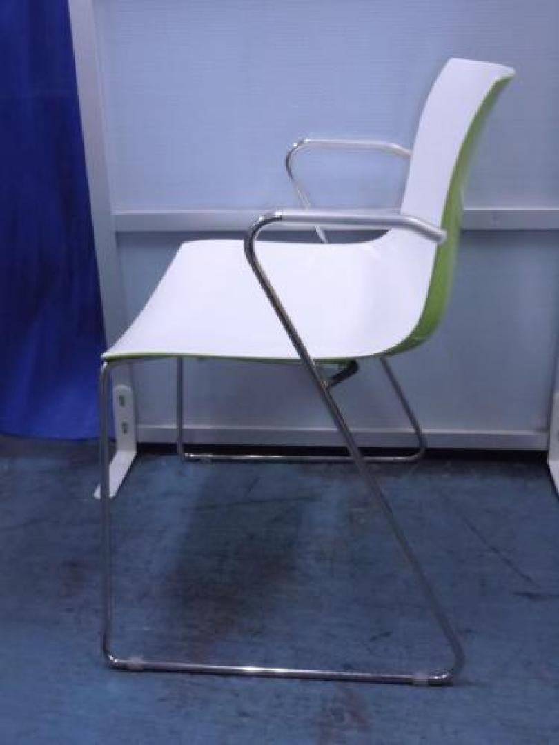 【2脚のみ4,200円!】okamura製 Catifa キャティファちぇあ ■ミーティングチェア ■コンビカラーシェル ライトグリーン×ホワイト 【会議チェア】- 在庫数