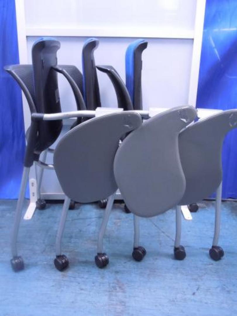 【2月末日までセール品】【8脚入荷!】UCHIDA 内田洋行製 ■FM310 ■ミーティングチェア ネスティングチェア ■メモ台付き! ■ブルー【会議チェア】- 在庫数