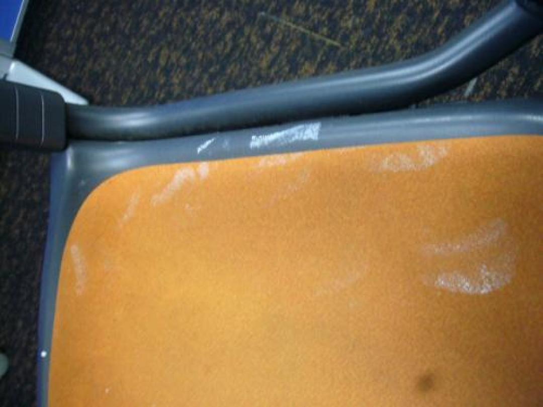 - あり黄ばみ・変色が広い範囲にうっすらある、または濃い黄ばみ・変色が一部ある。(例、座面・背もたれ、脚部等にある。)