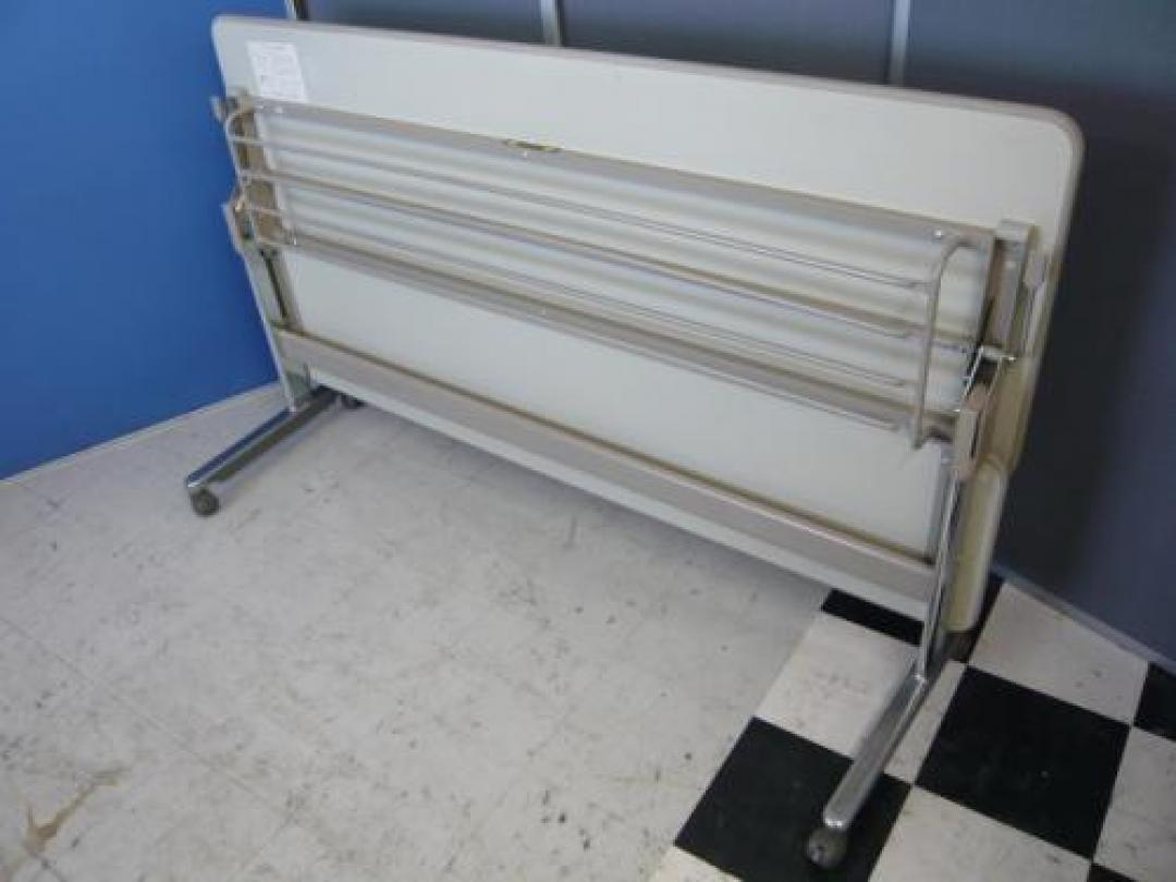 - 一部不具合あり天板歪み、アジャスター無し、キャスター使用不可ようなそのテーブルの本来の効用を果たすための機能以外の一部が使用不可な状態。(例、キャスターロッ ク機能使用不可、棚板無し等がある。)