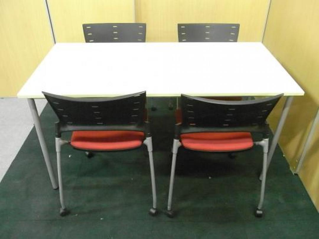 【会議テーブル&ネスティングチェア】■プラス製テーブル■ITOKI製ネスティングチェア■幅1400mm- 在庫数