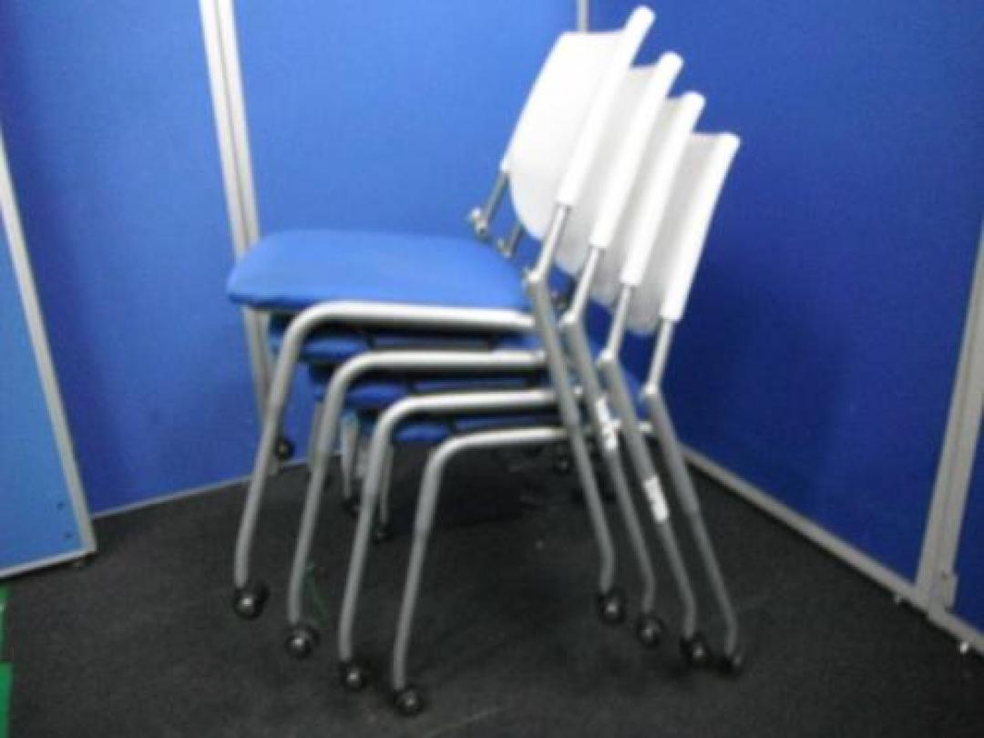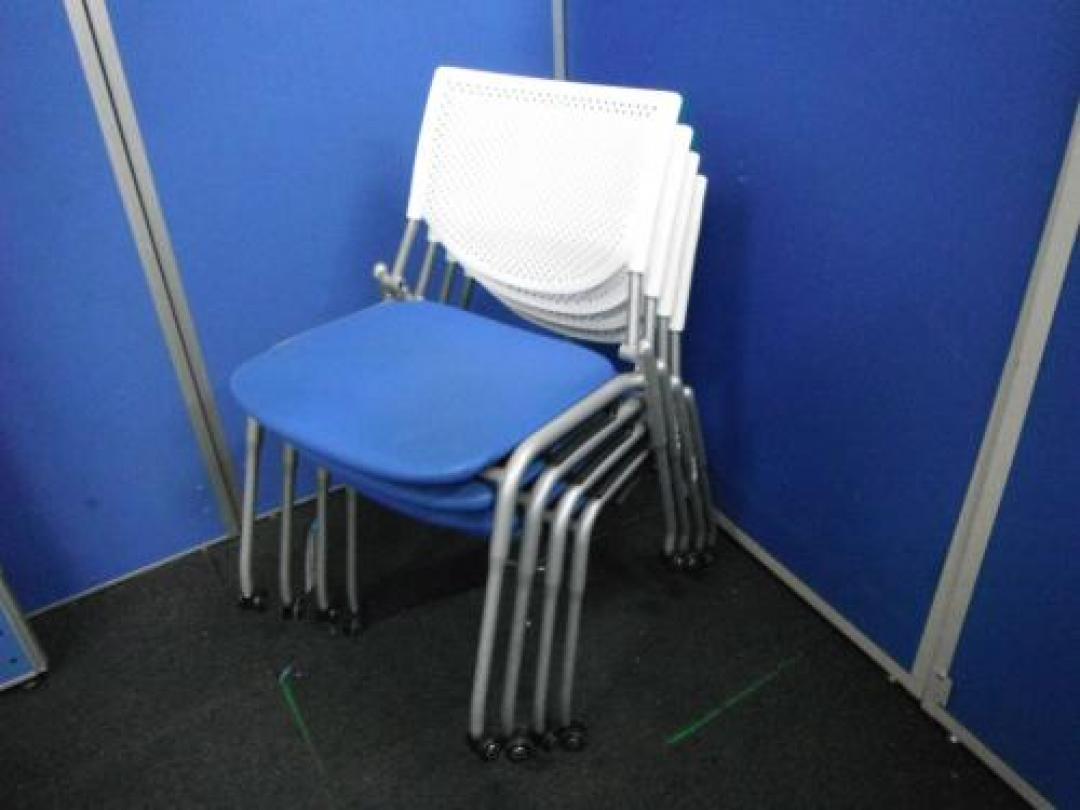 ■状態良好■オカムラ製スタッキングチェアが入荷。人気のブルー&ホワイト色。ミーティングなどにいかがでしょう。【会議チェア】- 池袋店