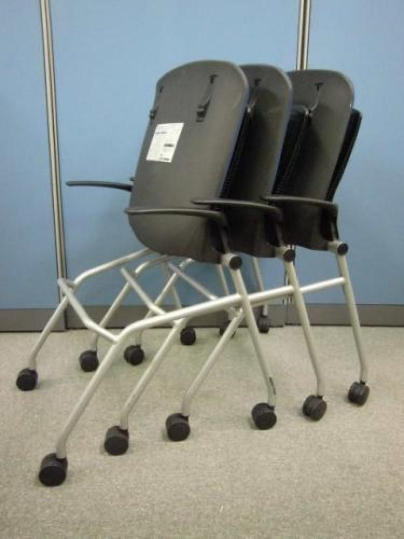 【新品買ったらもったいない!】オカムラ製 グラータチェア ■ネスティングタイプ / 肘付き【会議チェア】- 横浜本店
