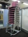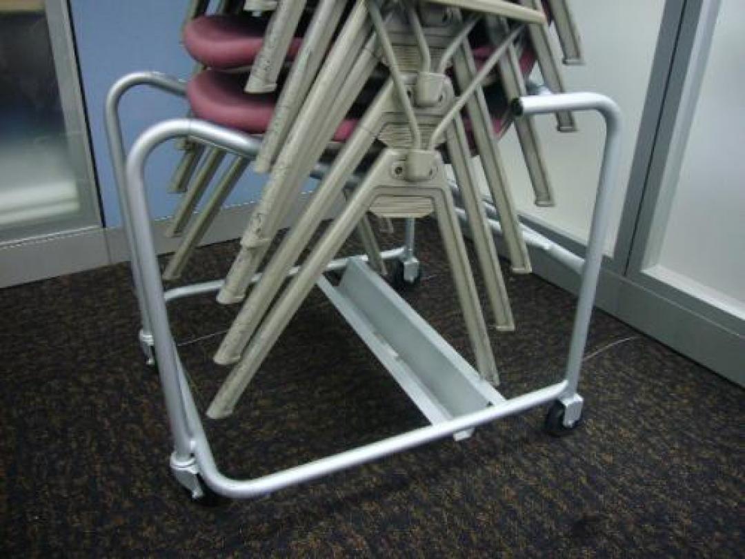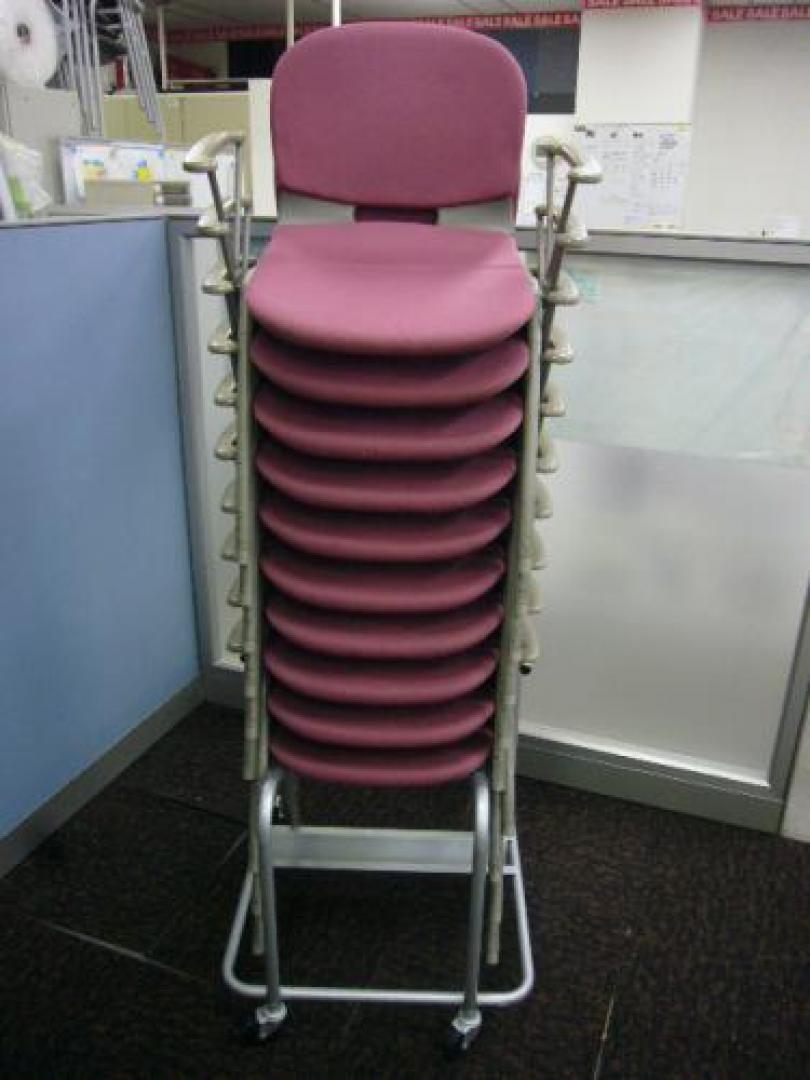 【ロット】【スタッキングチェア10脚セット】 ☆驚くなかれ、中古でもこんなロットで揃います!!また、収納と移動に便利な台車付き!!これぞ錦糸町店の最大の強み♪起業やレイアウト変更などで必要なあなたに御提案致します。【会議チェア】- 在庫数