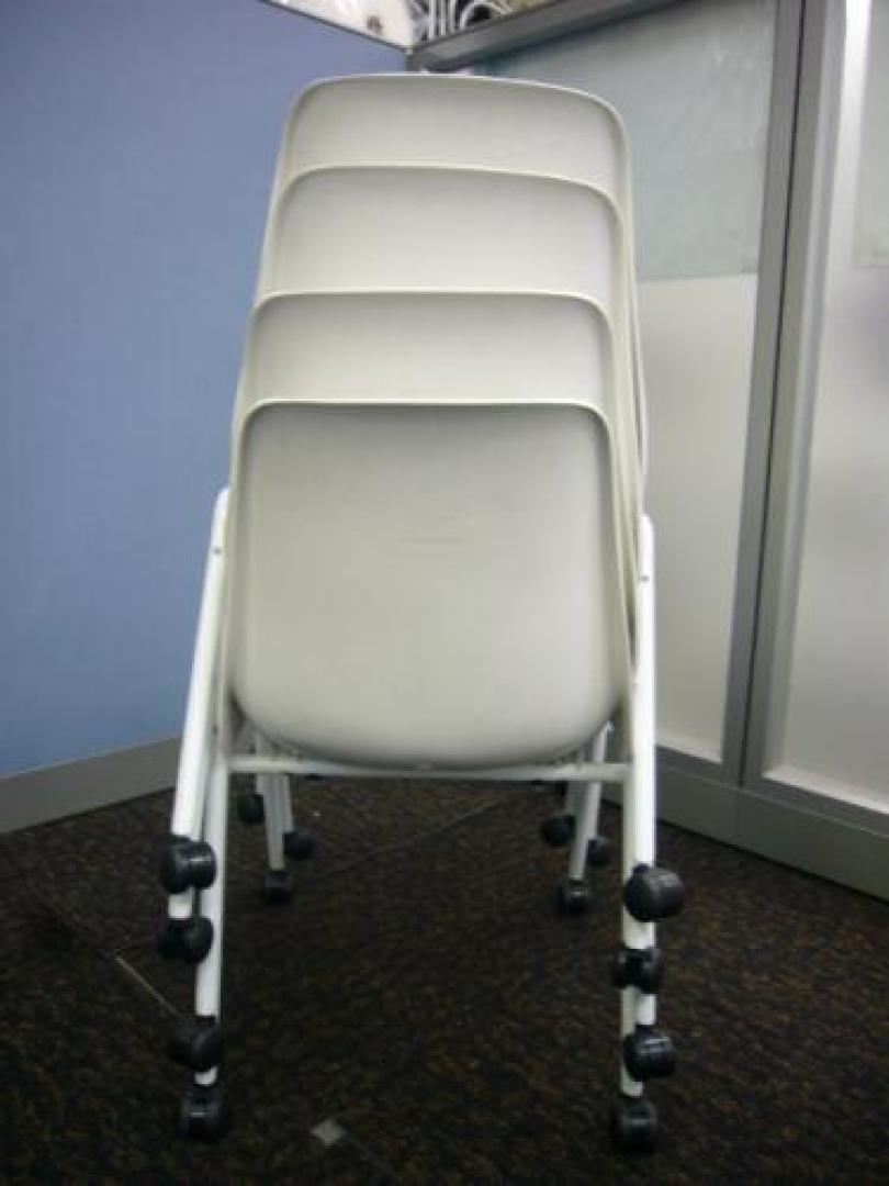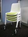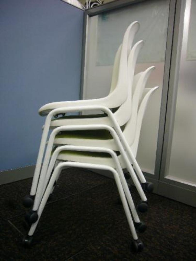 ■4脚セット■キャスター付き スタッキングチェア■ ホワイト×ライトグリーンの鮮やかな色合い!!これでオフィスも明るい雰囲気に^^【会議チェア】- 在庫数