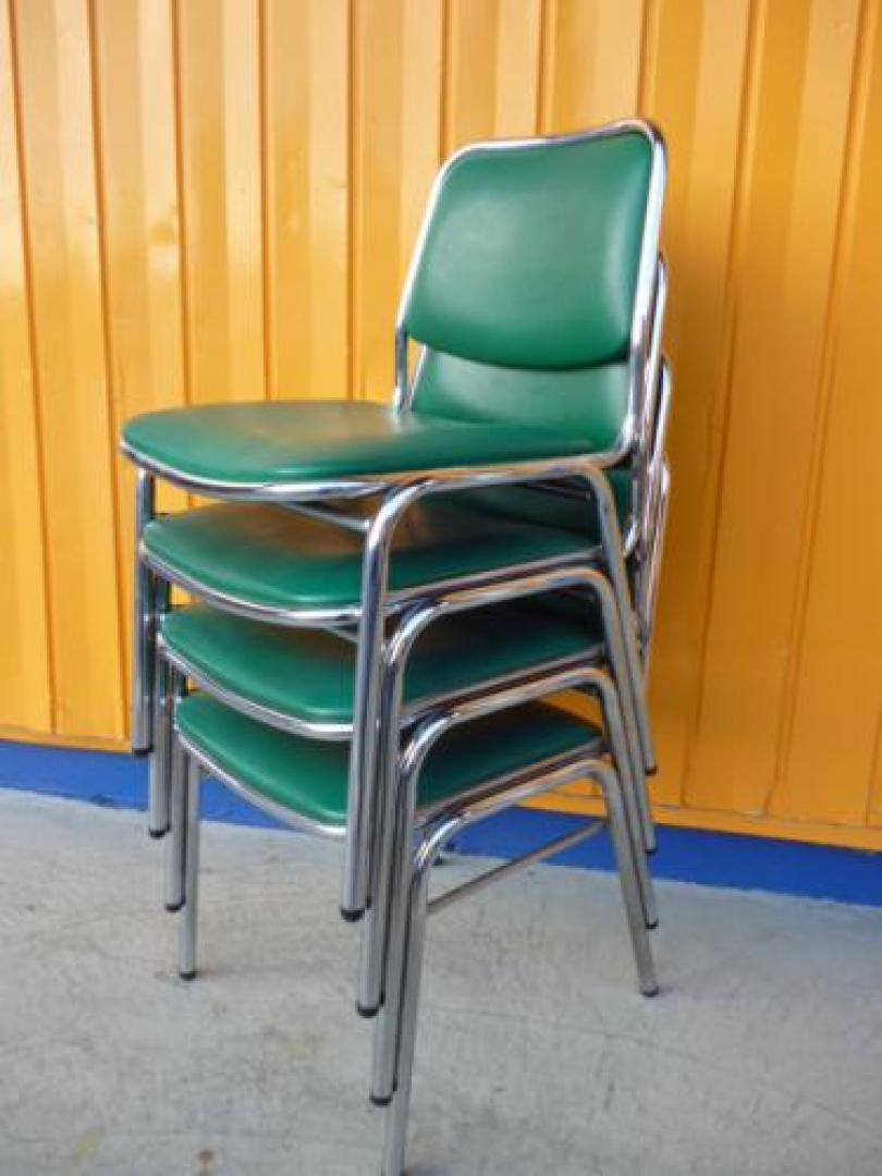レトロなスタッキングチェア 4脚セット 食堂や会議ルーム用途多数 【会議チェア】- 仙台店