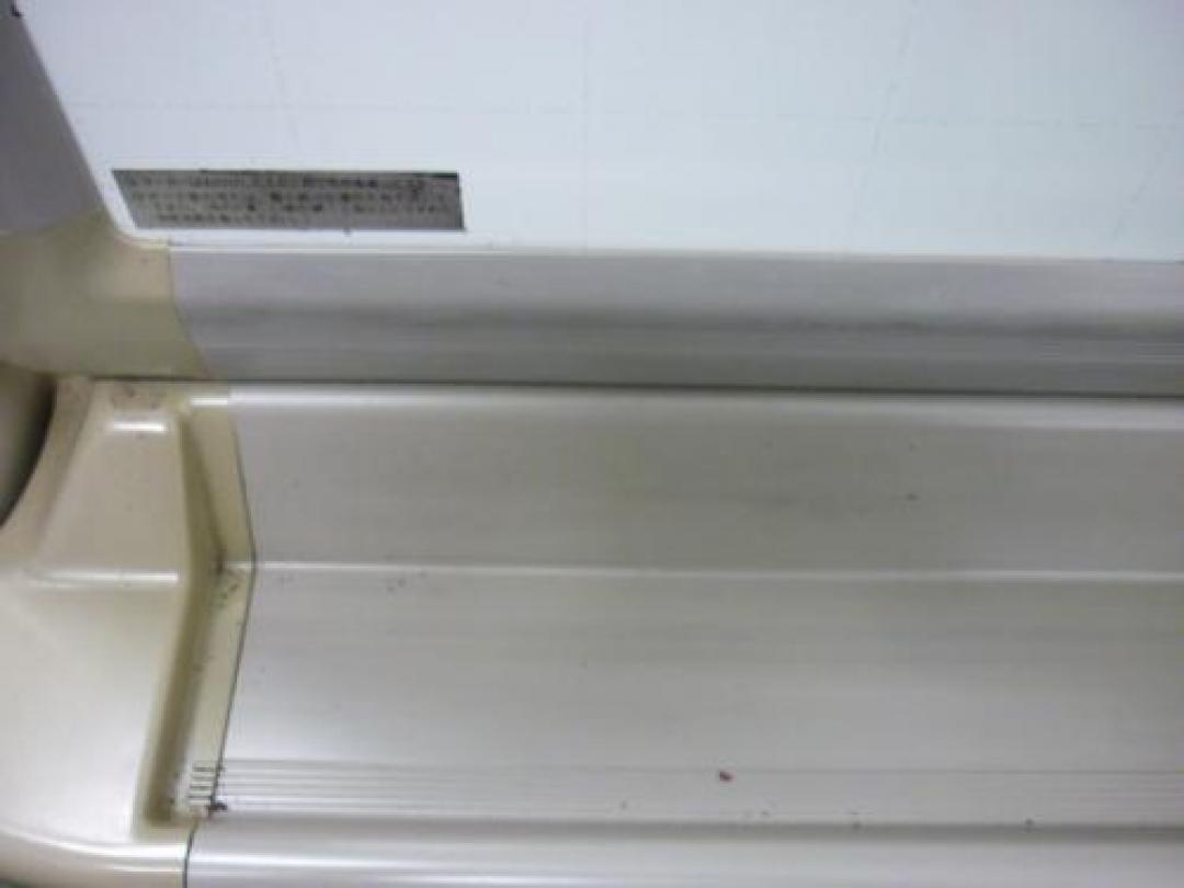 - かなり強い濃い黄ばみ・変色が商品全体にある。(例、板面、受け、サイド部分、脚部にある。)