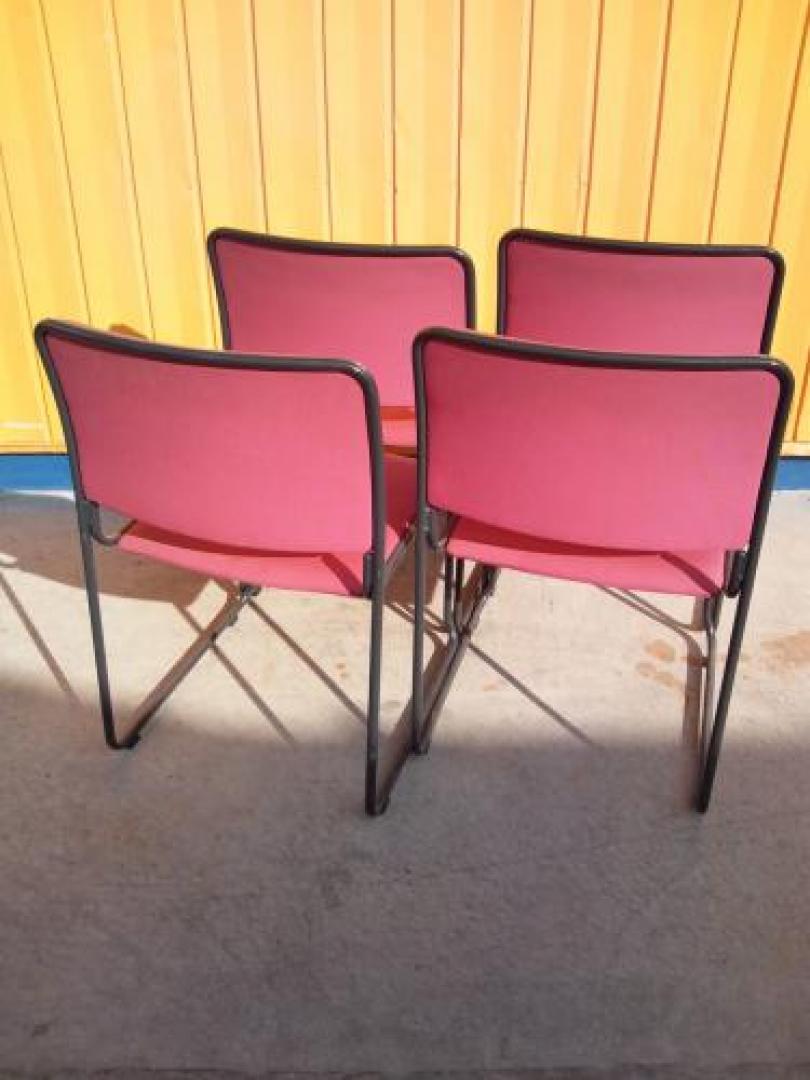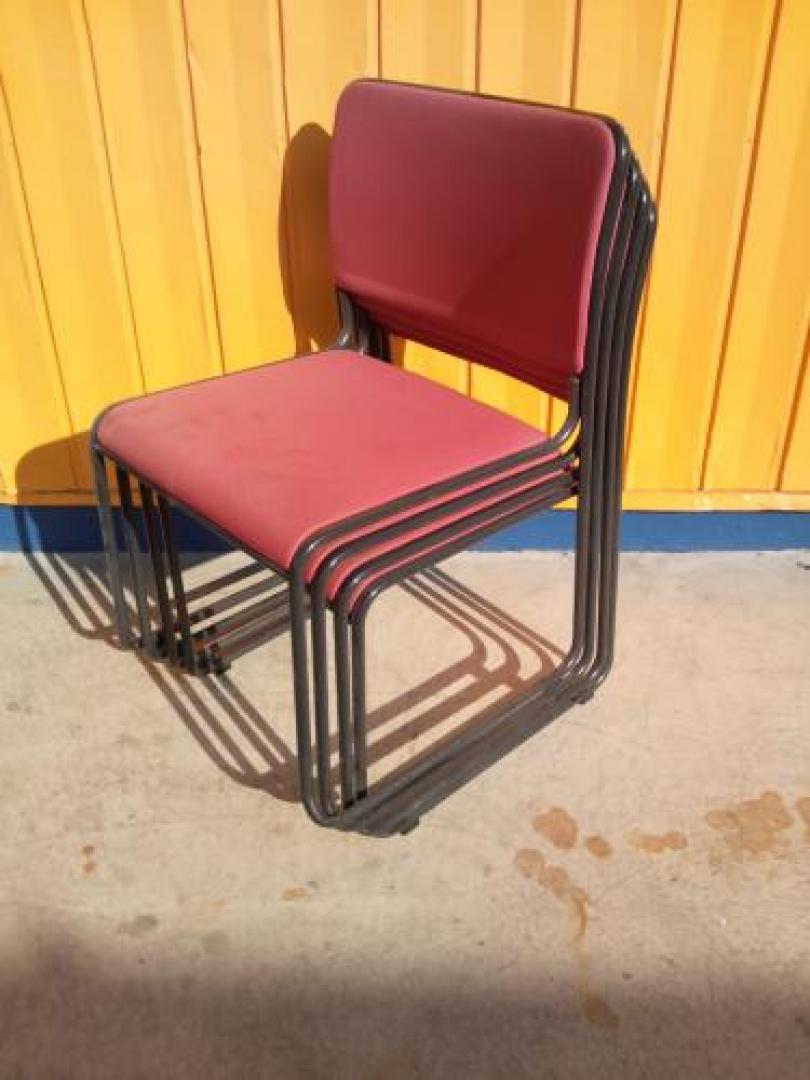 【セット商品】ライオン製 スタッキングチェア 4脚セット レッドカラー【会議チェア】- 仙台店