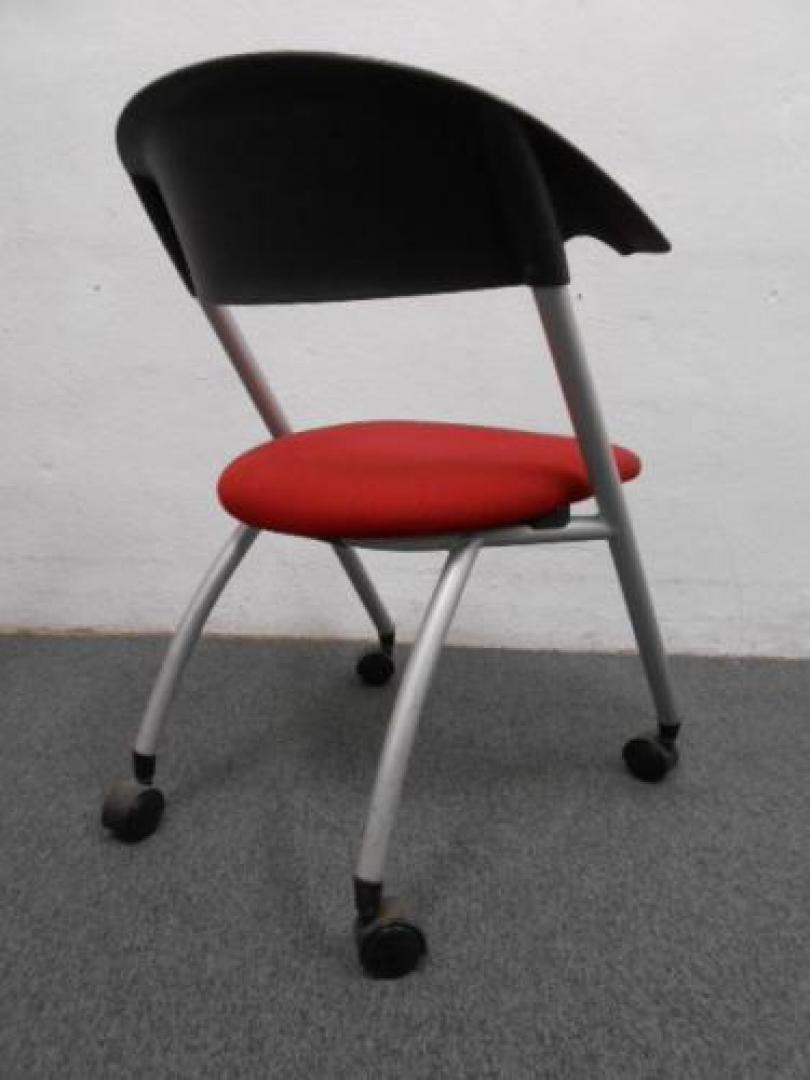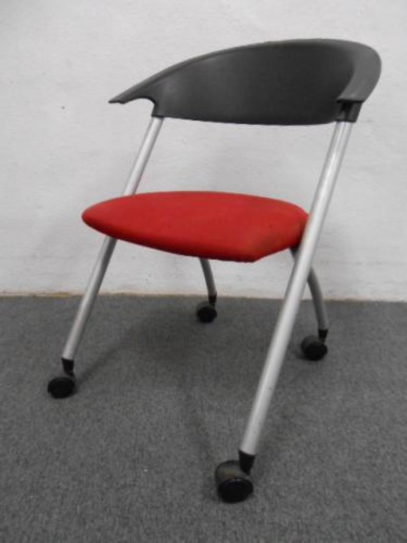 ミーティングチェア | レッド | キャスター付! |残り2脚の為、お値打ち価格!!【会議チェア】- 在庫数