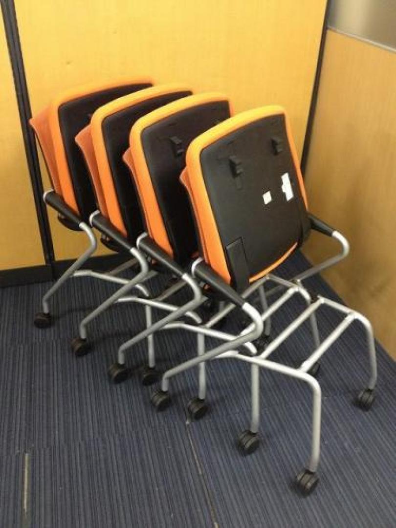 【セット商品】サテリテ■スタッキング■オレンジ■メッシュの良いネスティング■4脚セット■【会議チェア】- 日本橋店