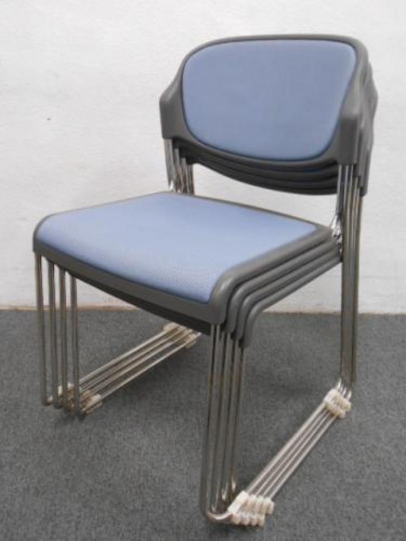 スタッキングチェア 4脚セット | ブルー | 重ねて置ける、省スペースで!!【会議チェア】- 在庫数