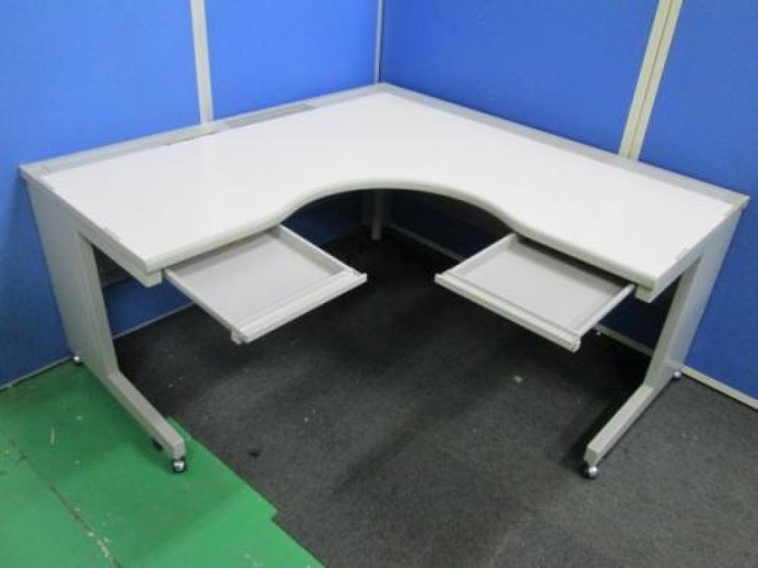 【内田洋行製 L字デスク】【コンセント付】海外仕様の為、コンパクトサイズ!キャスター付で移動もラクラク- 池袋店