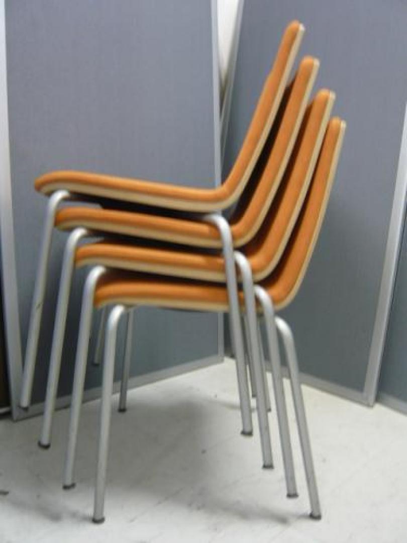【セット商品】◆オカムラ製 スタッキングチェア オレンジ 4脚セット■リフレッシュスペースにピッタリのチェアです【会議チェア】- 埼玉本店