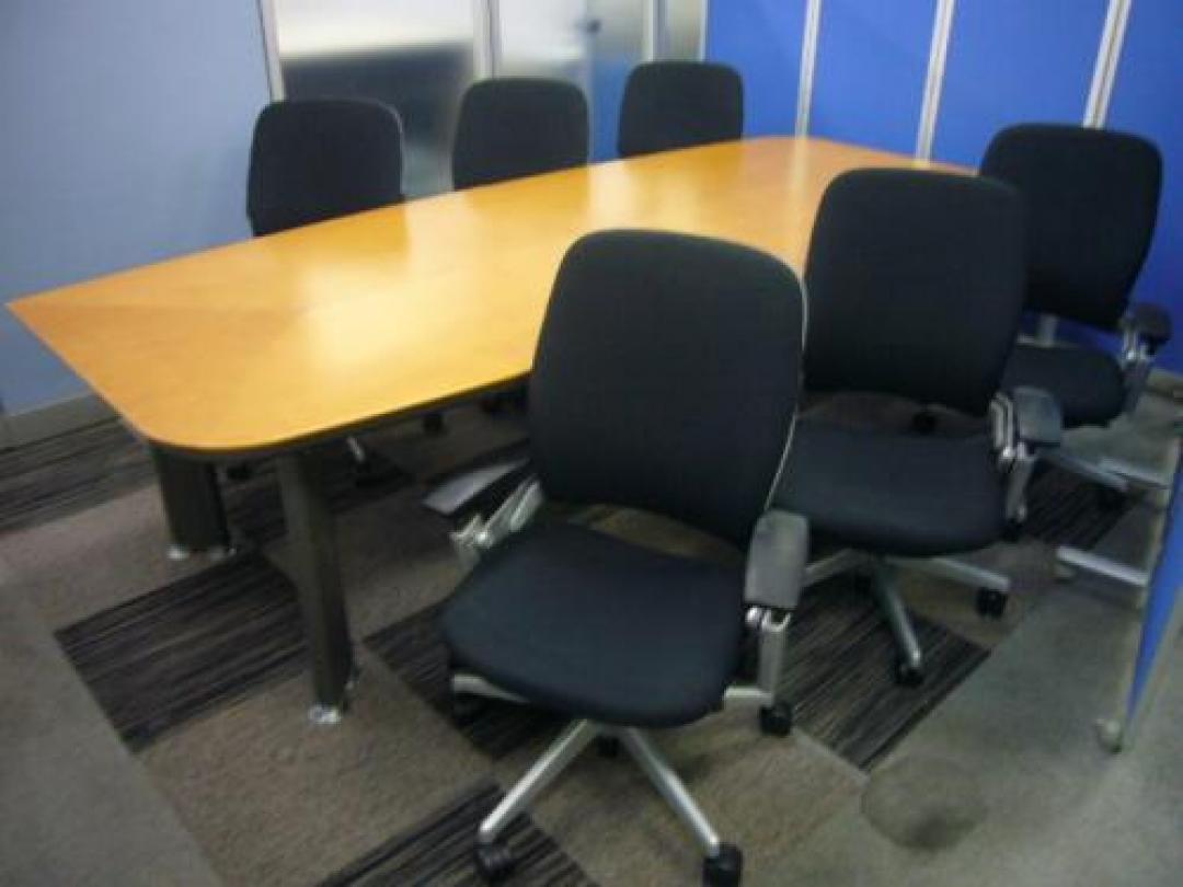 【セット商品】【これぞ錦糸町店】オカムラ製エグゼクティブ用ミーティングテーブルPREVIA(プレビア)+スチールケース製リープチェア(Leap)×6のセット商品!!【6名用ミーティング】- 在庫数