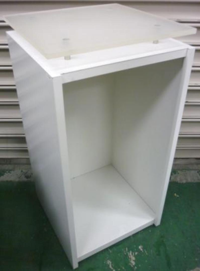 - かなり強い濃い黄ばみ・変色が商品全体にある。(例、天板、正面、背後、サイド部分にある。)