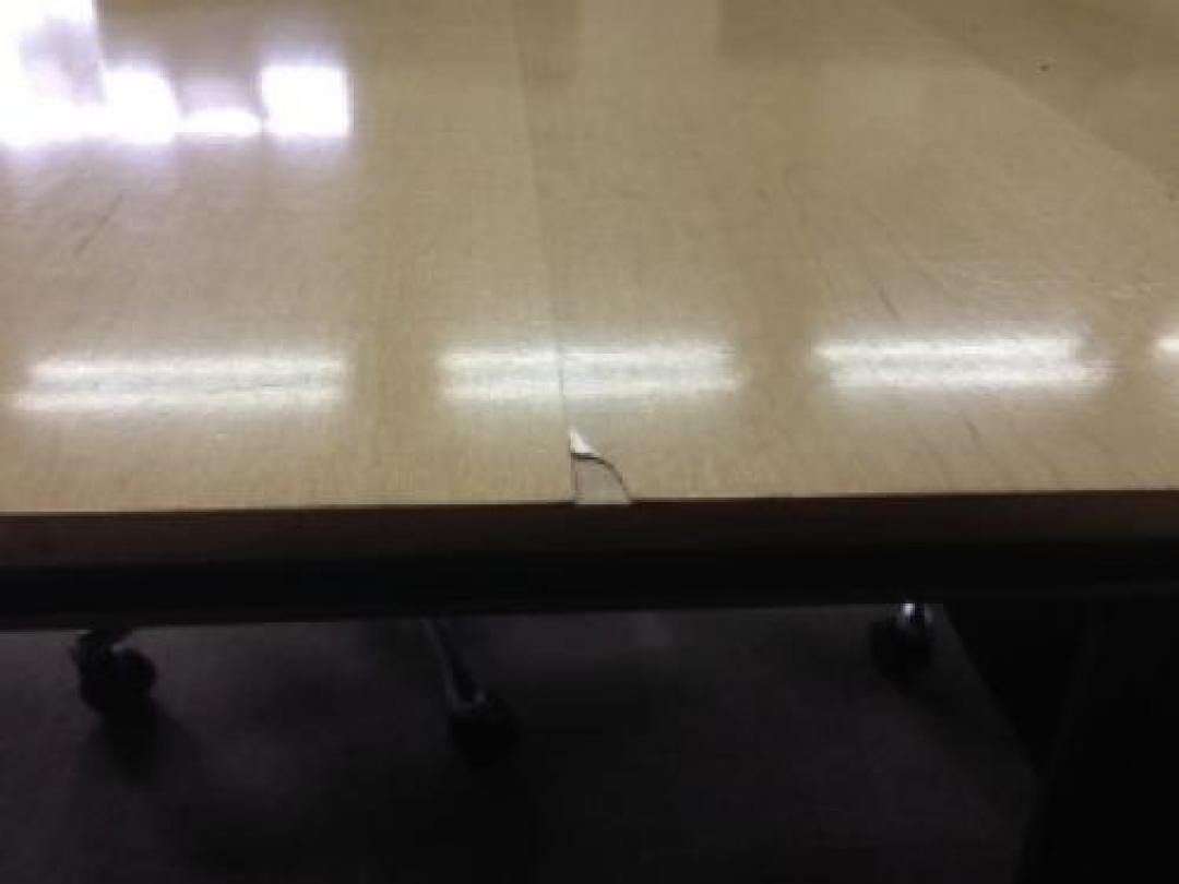 - 壊れている天板歪み、アジャスター無し、キャスター使用不可のようにそのテーブルの本来の効用を果たすための機能に不具合がある。
