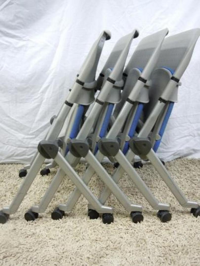 【25脚入荷!】オカムラ製 LITA リータチェア ■ネスティング収納も可能なスタッキングチェアです! ■ブルー【会議チェア】- 在庫数