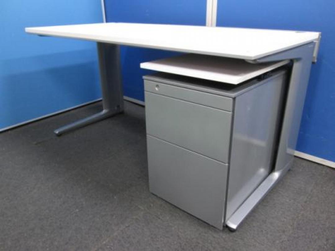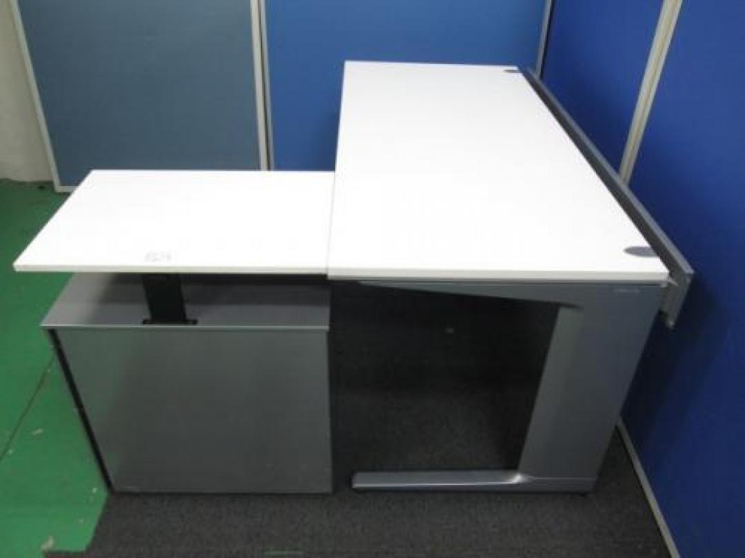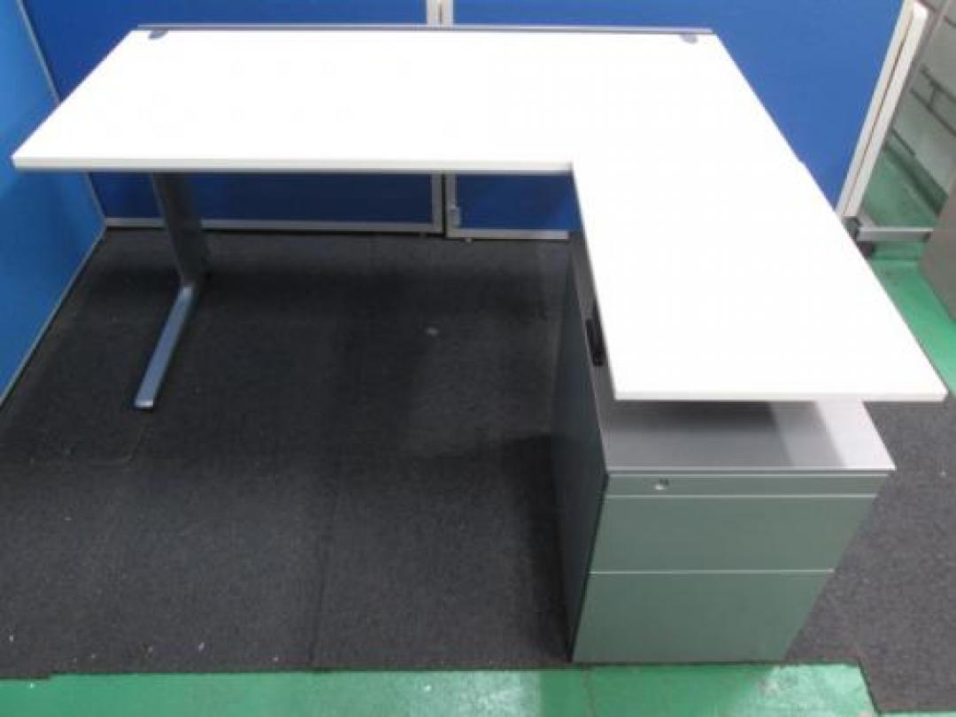 【簡易L型デスク】【オカムラセット プロステージ平机+天板付レベルアップ3段ワゴン】- 池袋店