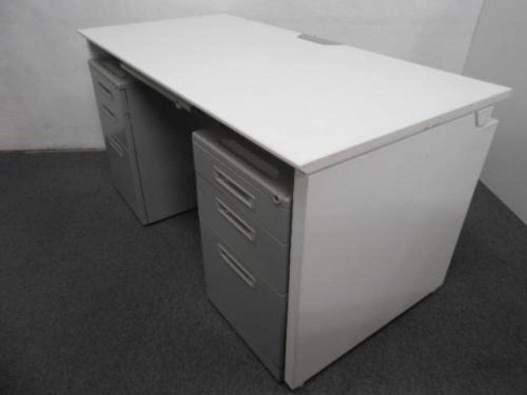 平机&3段ワゴン×2セット | 平机(オカムラ プロユニット ホワイト)| 3段ワゴン(内田洋行 ジャスト グレー)| 数量4セット | 両袖机として使うも良し、平机とワゴンを別々に使うも良し、です!! | 【セット商品】- 在庫数